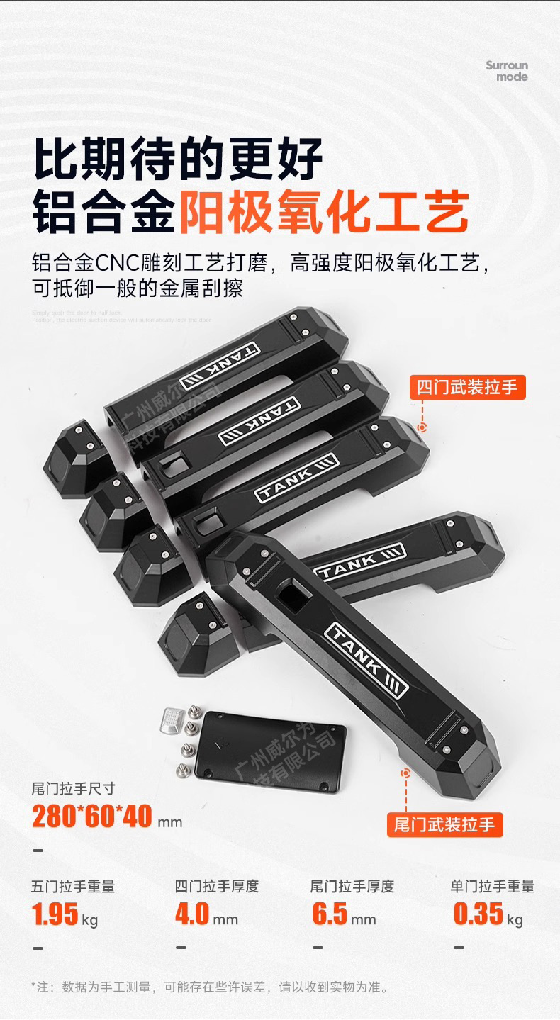 Tank 300 door handle modified car door handle armed series decorative tail door handle aluminum alloy appearance accessories