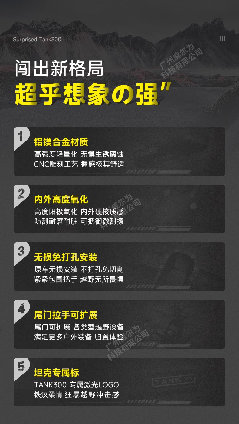 Be the first to review “Tank 300 door handle modified car door handle armed series decorative tail door handle aluminum alloy appearance accessories” Cancel reply