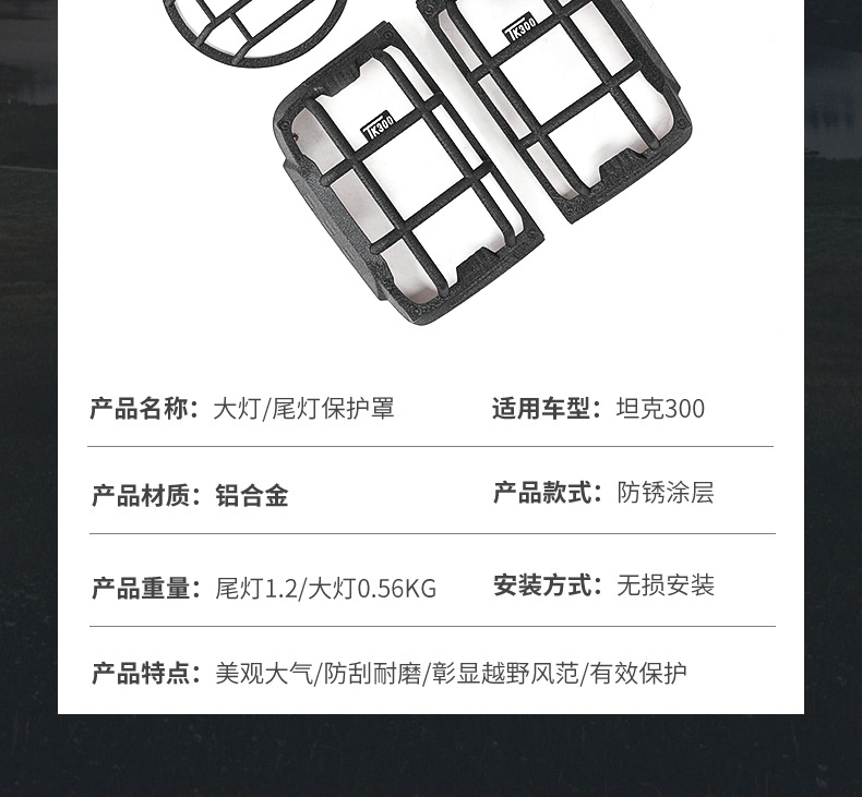 Tank 300 explosion-proof paint tail light cover mecha tail light frame dumb black rear headlight protective shell frosted all-inclusive modification parts