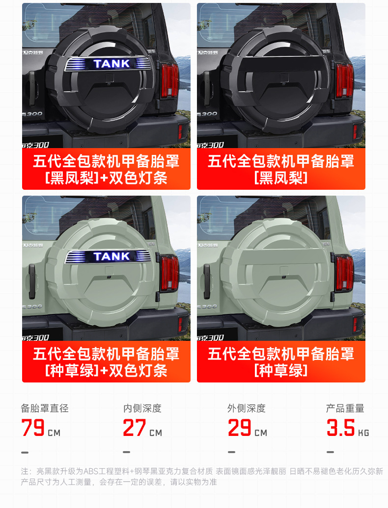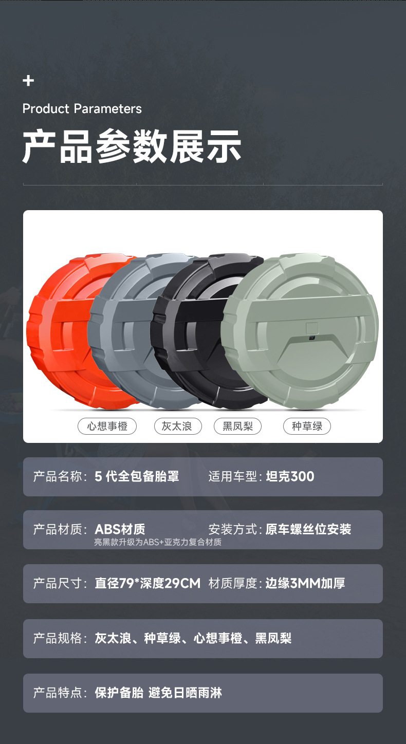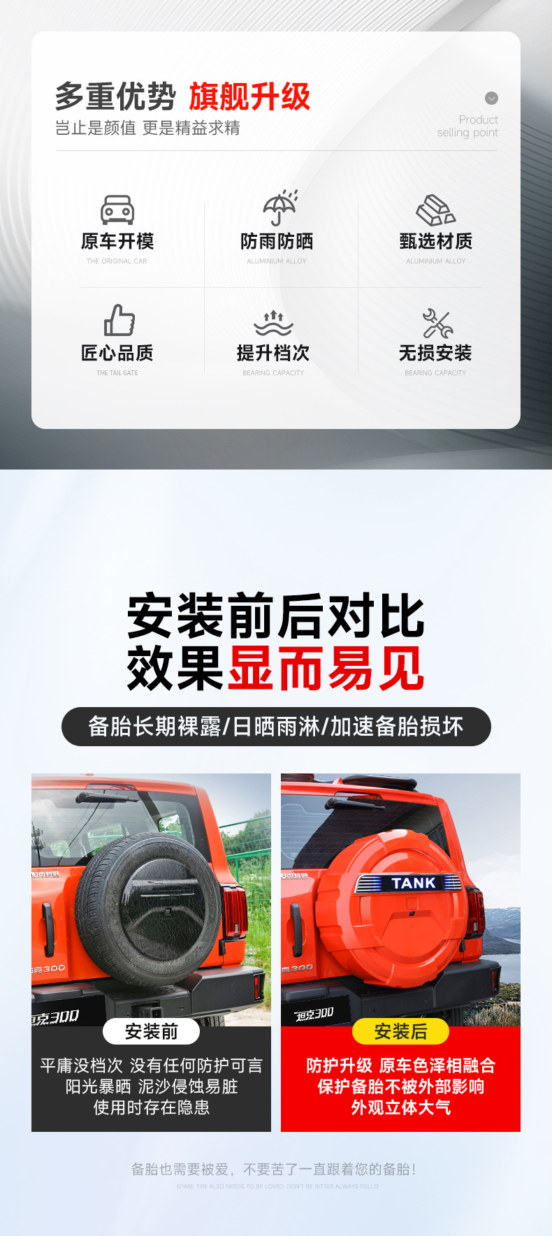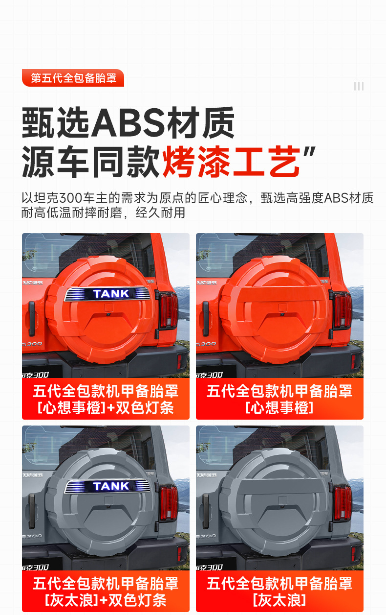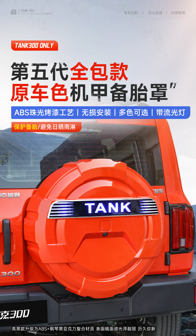Tank 300 five-generation all-inclusive spare tire cover modified tailgate rear tire baking varnish protective cover decorative appearance decorative parts