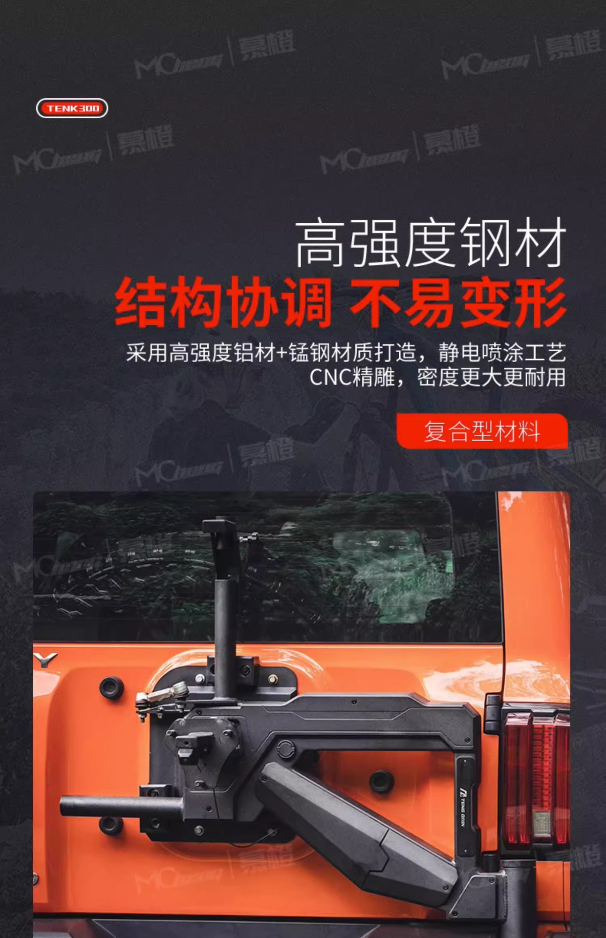 Tank 300 linkage spare tire bracket Ark multifunctional rear license plate frame reversing light to prevent spare tire from sinking modification