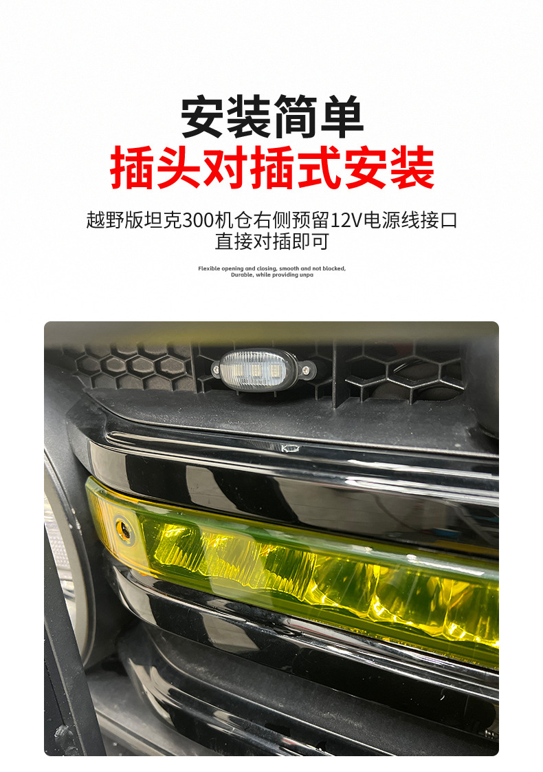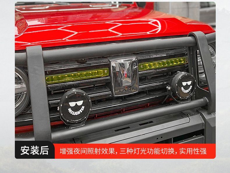 Tank 300 medium mesh spot light modified LED long strip light with small yellow light day running light turn light off-road accessories