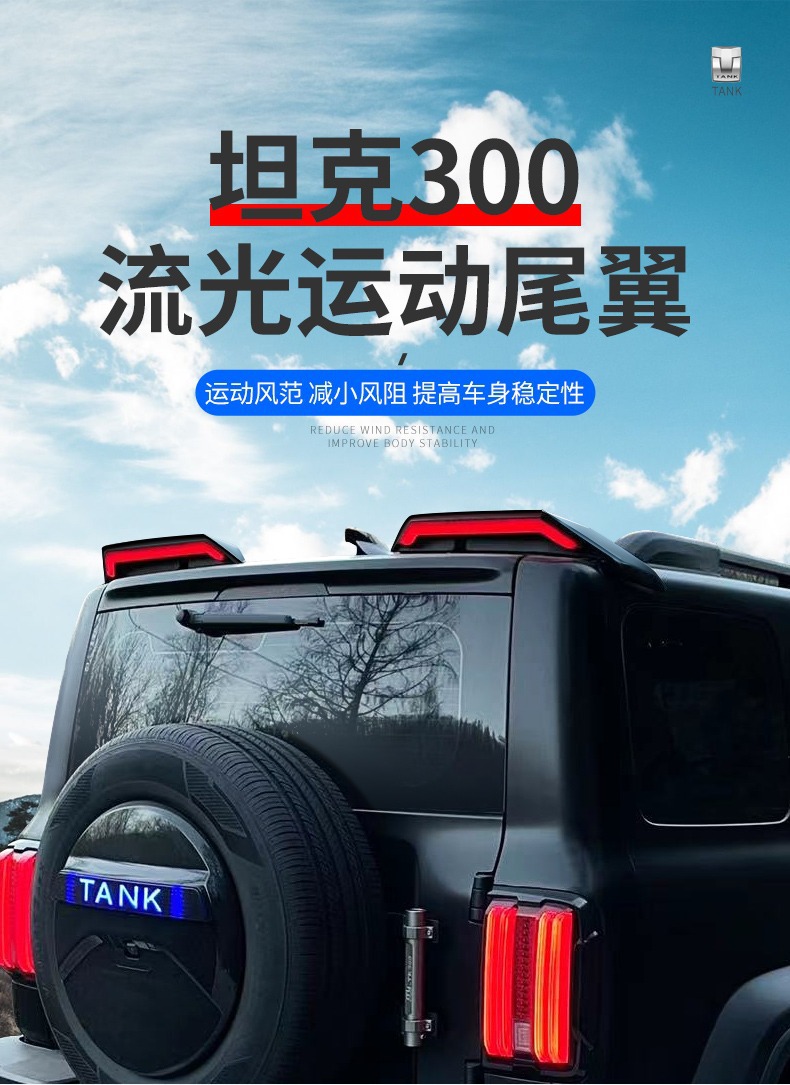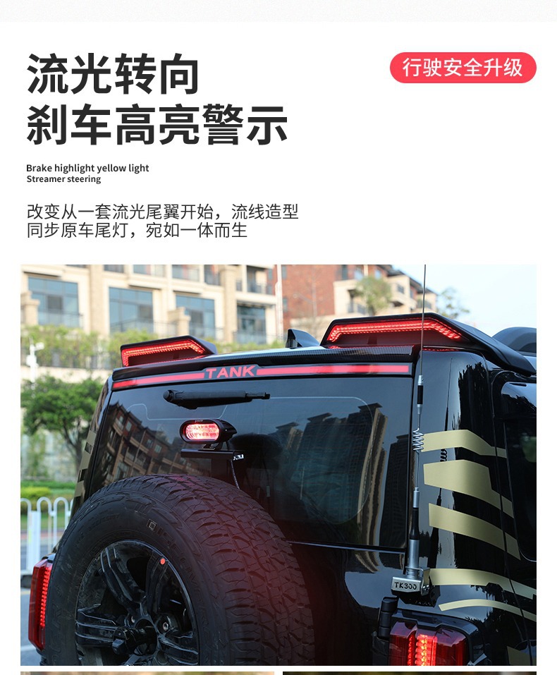 Tank 300 tail modification split streamer fixed wind tail roof cybertail with light exterior decoration