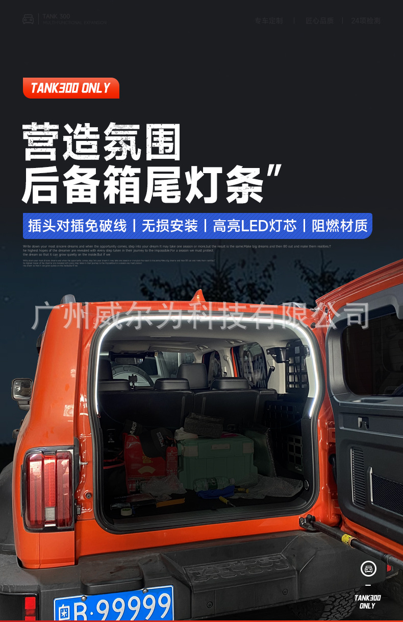 Tank 300 Trunk Lamp Modified Interior Tail Box Side Window LED Light Strip Highlight Interior Atmosphere Lamp Nondestructive Installation