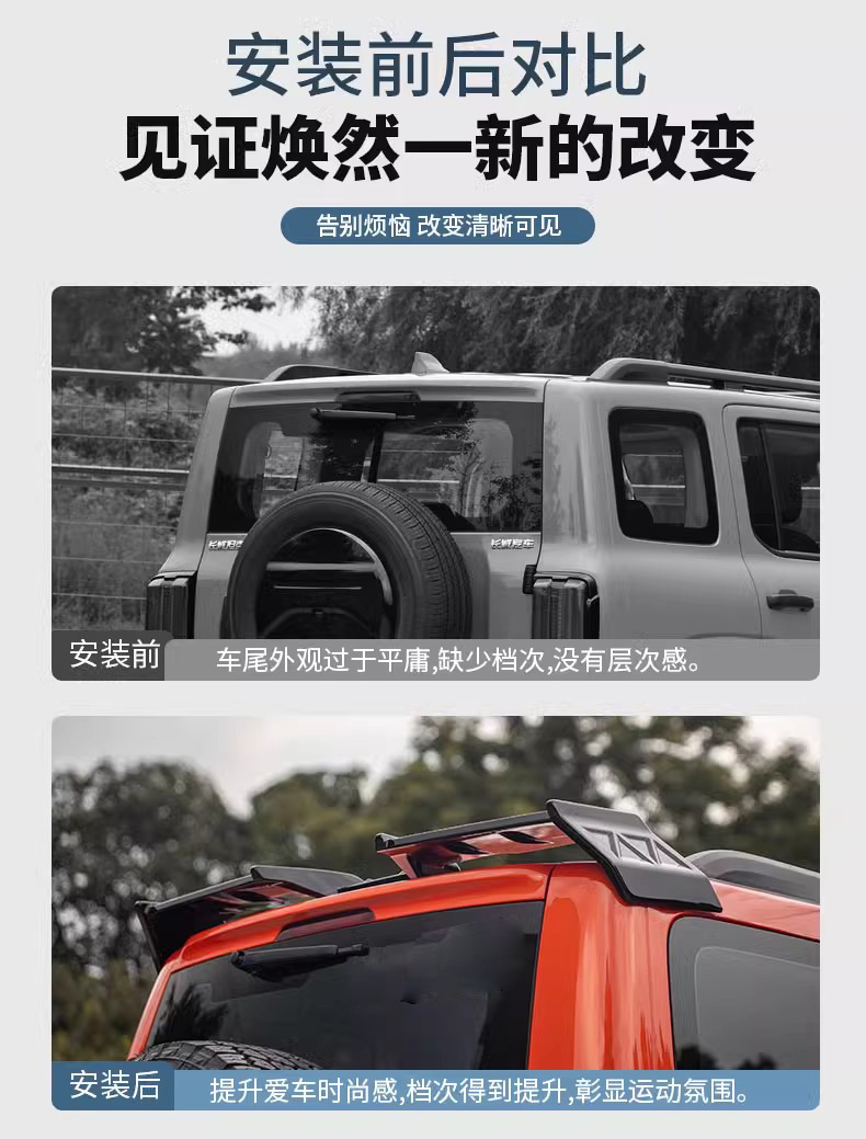 Be the first to review “Tank 300MC Sports Large Tail Special Tank Pressure Tail Roof Fixed Wind Wing Modified Top Wing Appearance Punch-Free” Cancel reply