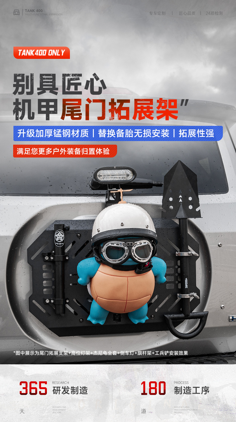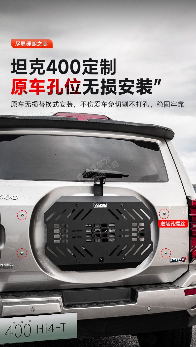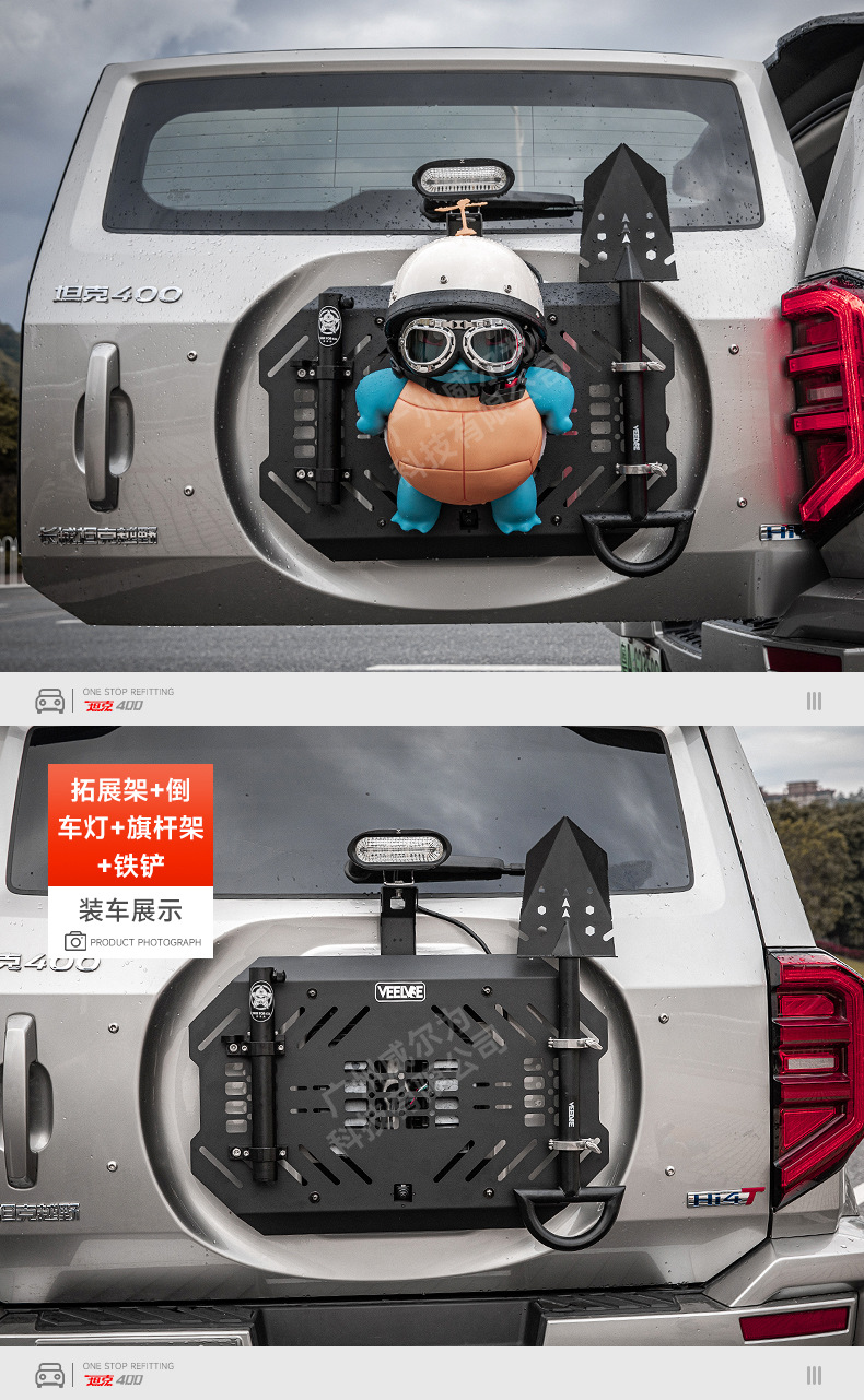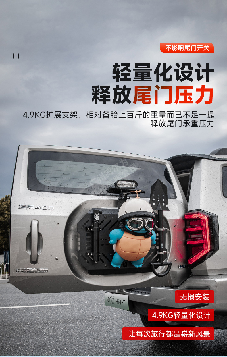 Tank 400 spare tire modification accessories must be changed tailgate mecha net decoration storage expansion frame sealing plate rear hanging equipment