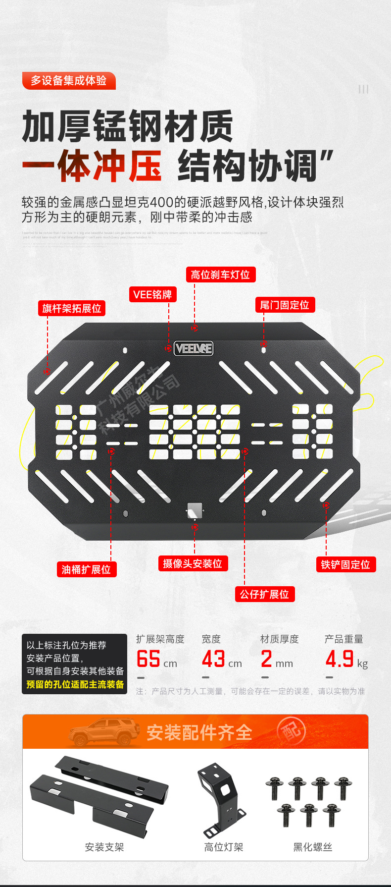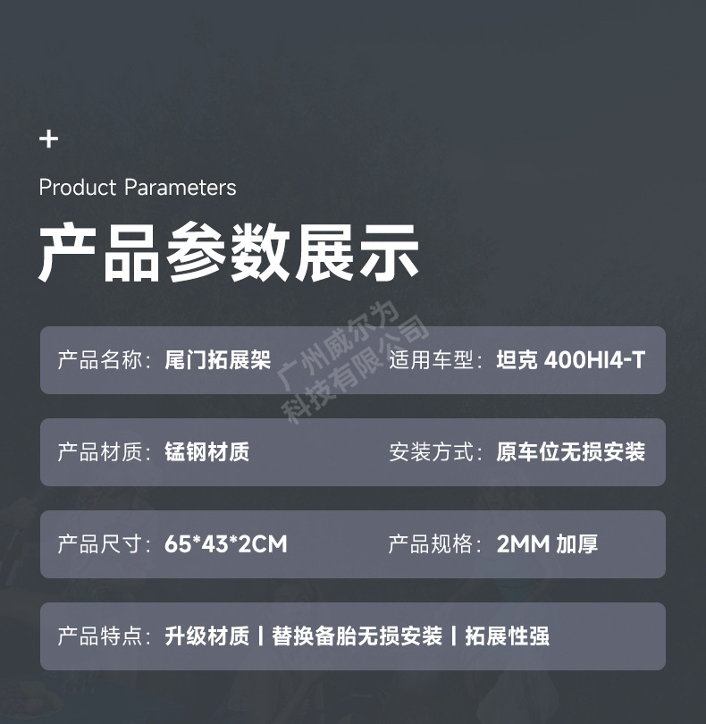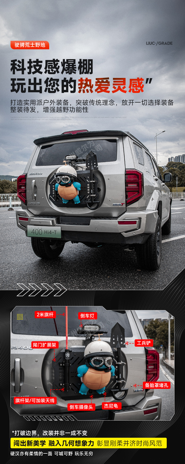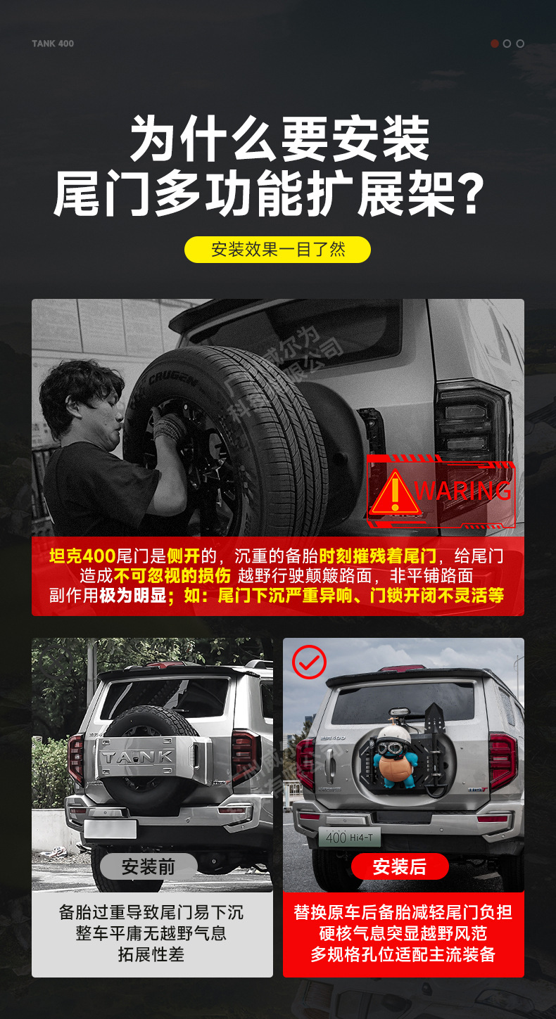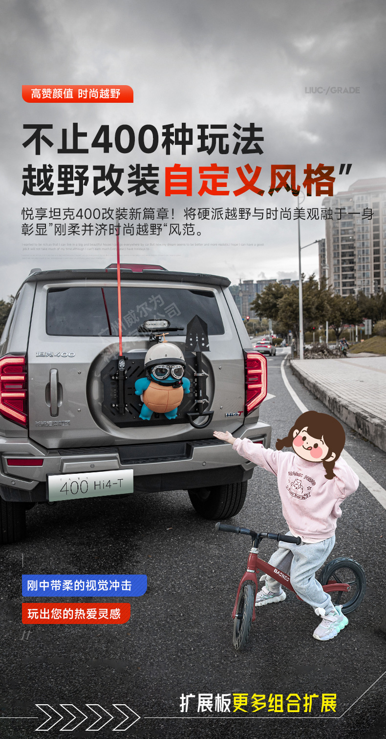Tank 400 spare tire modification accessories must be changed tailgate mecha net decoration storage expansion frame sealing plate rear hanging equipment