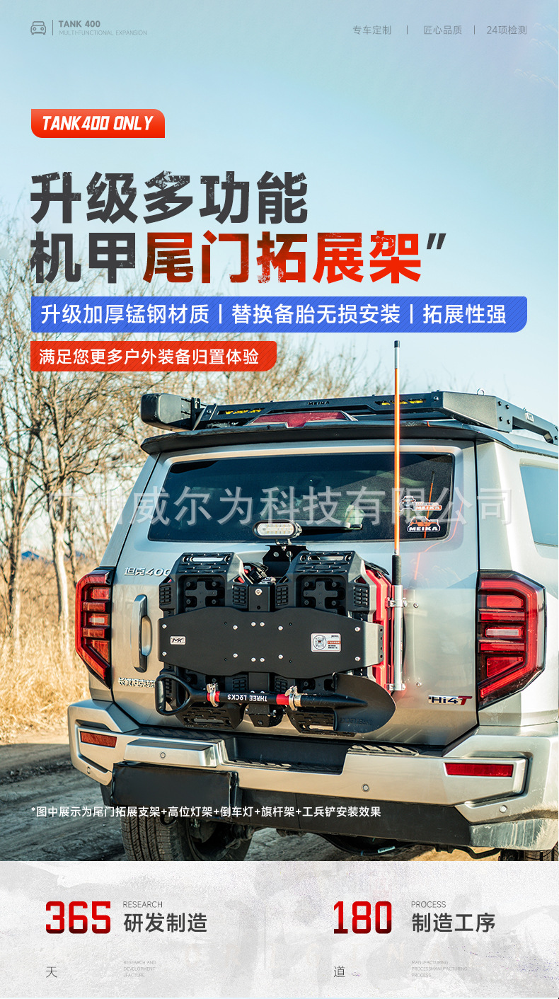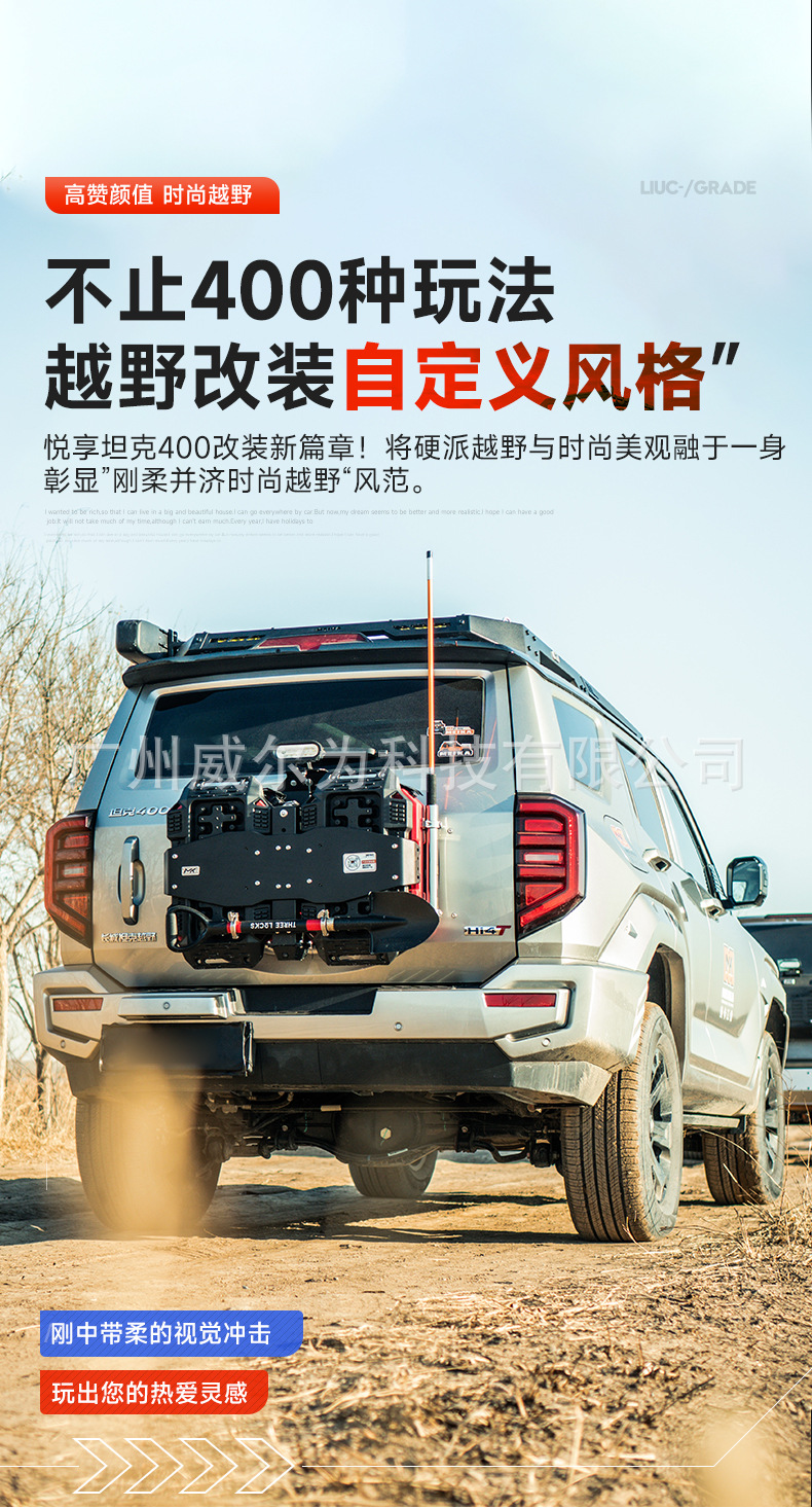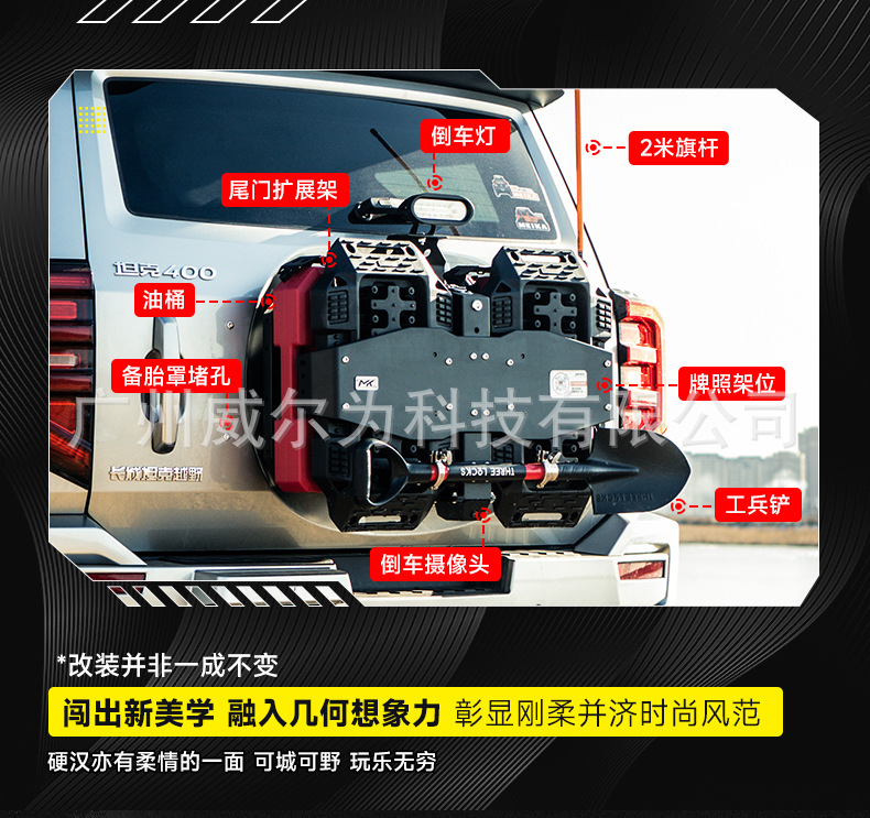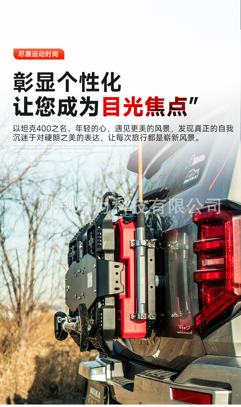 Tank 400 tailgate integrated equipment group off-road spare tire modification flagpole frame reversing light escape board expansion accessories