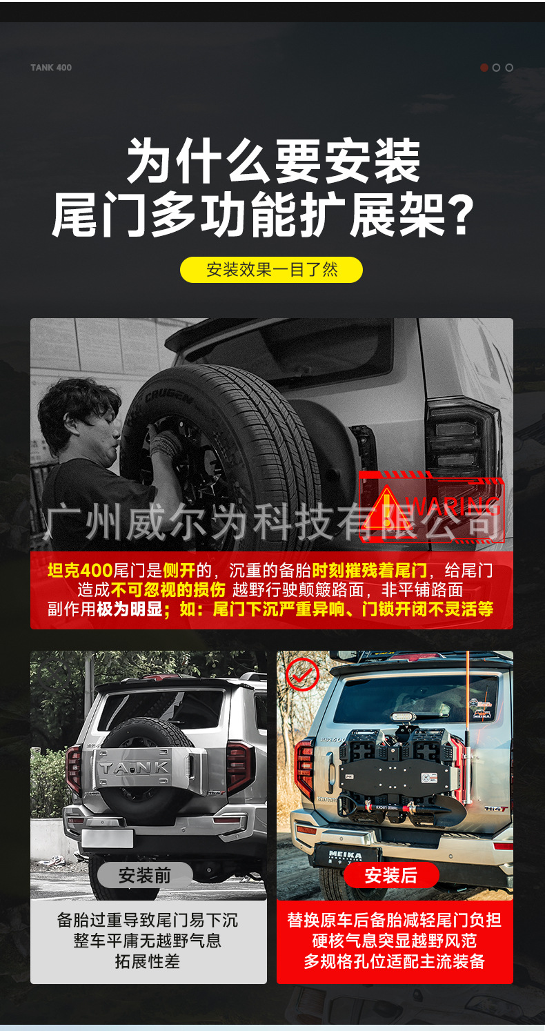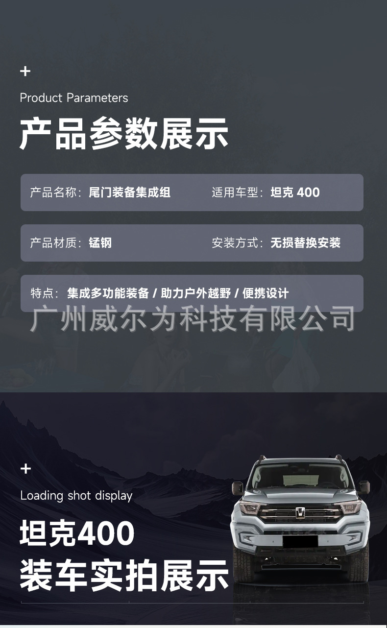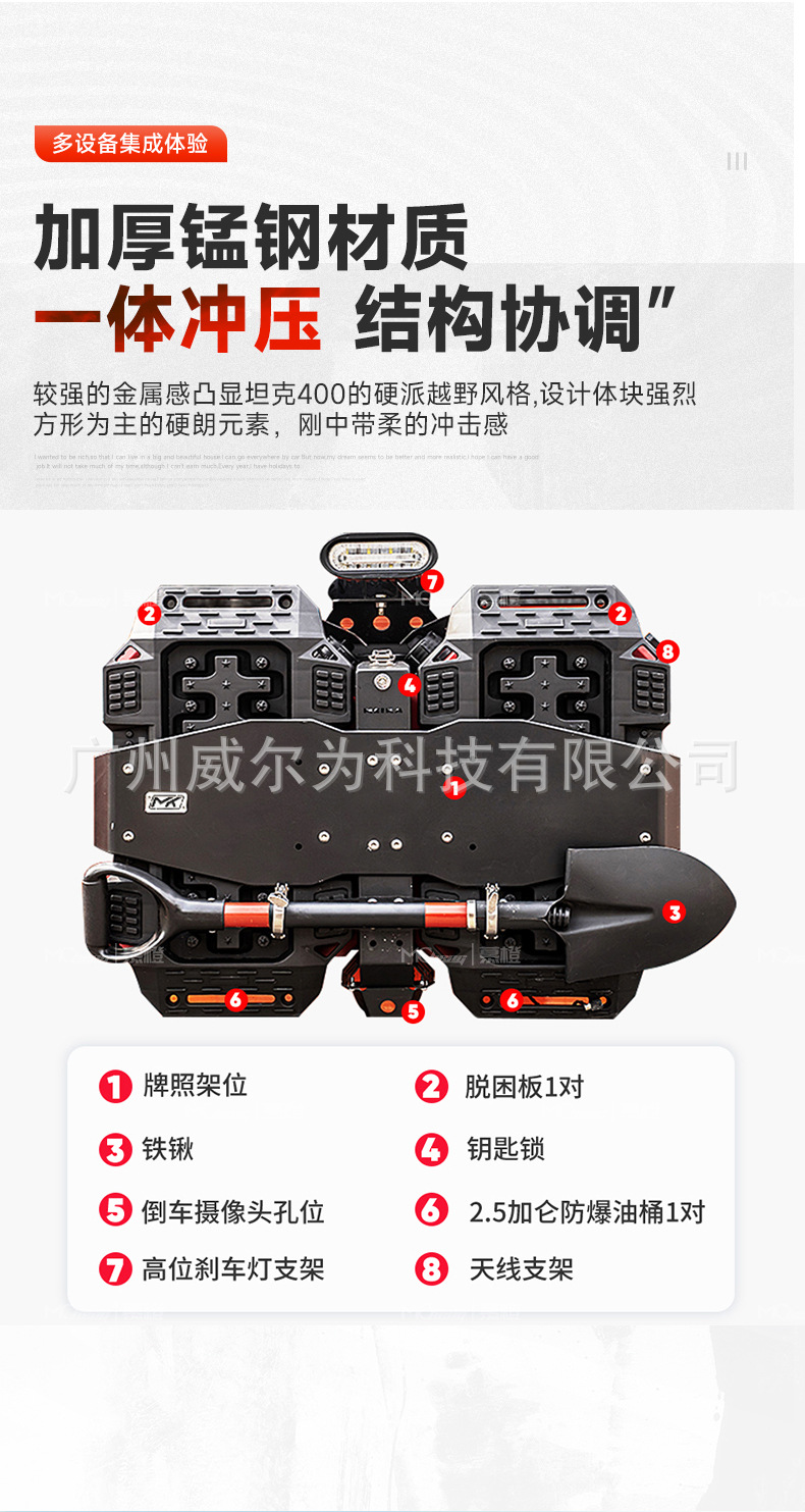 Tank 400 tailgate integrated equipment group off-road spare tire modification flagpole frame reversing light escape board expansion accessories