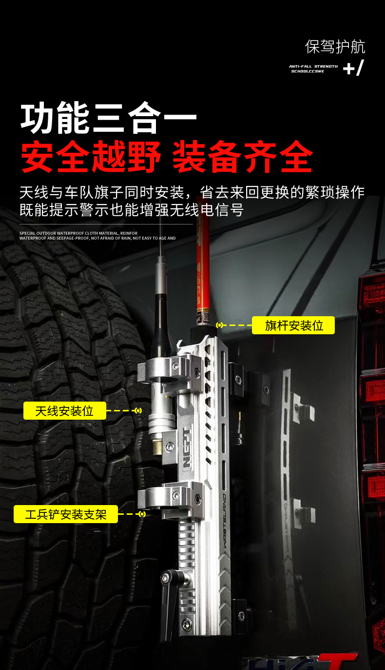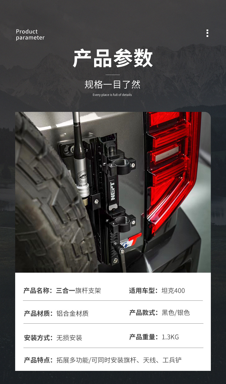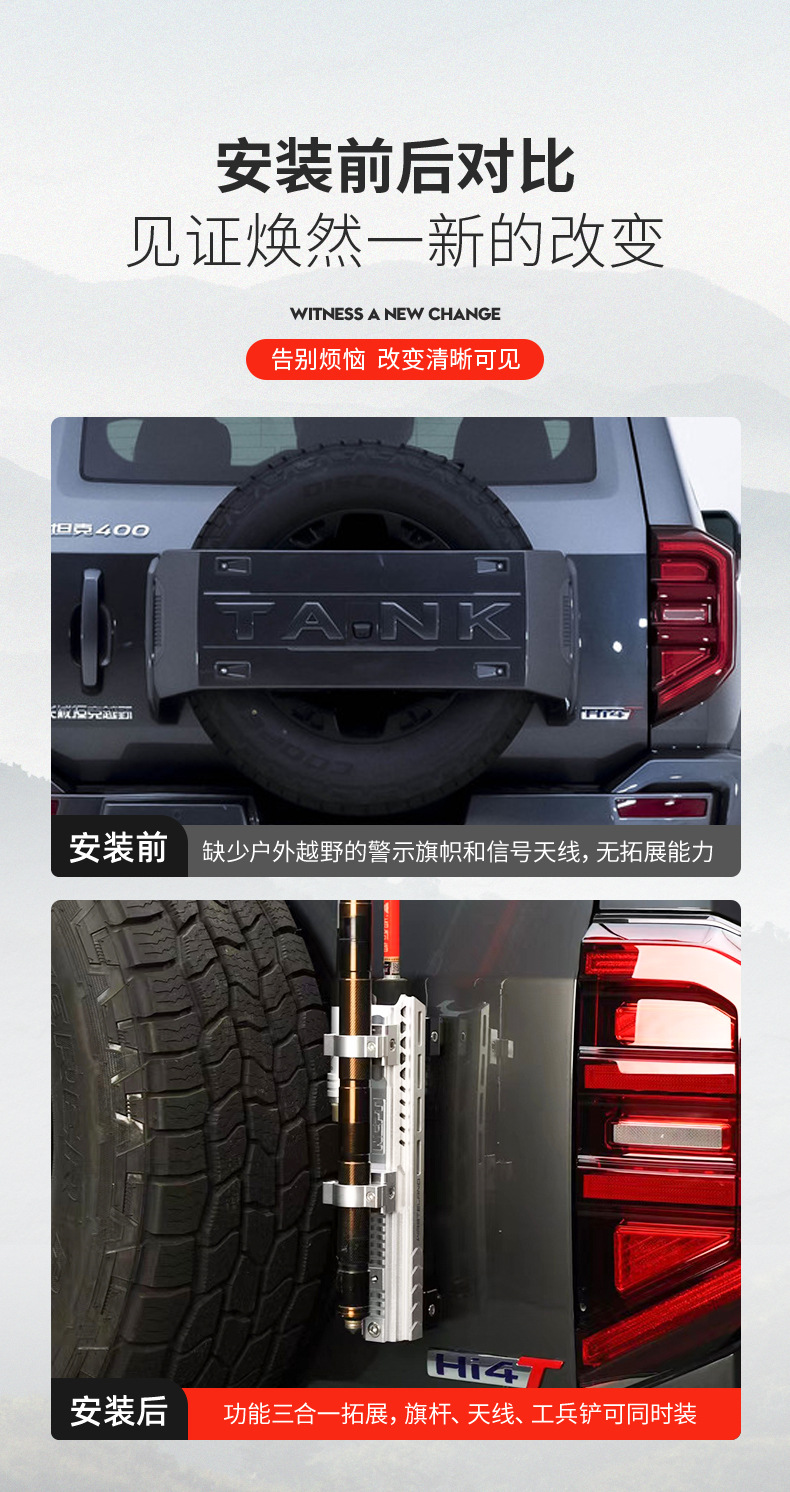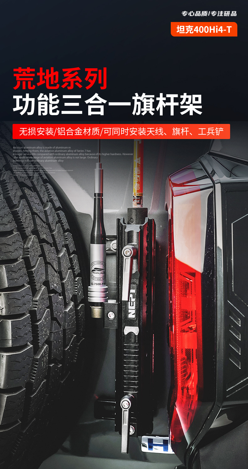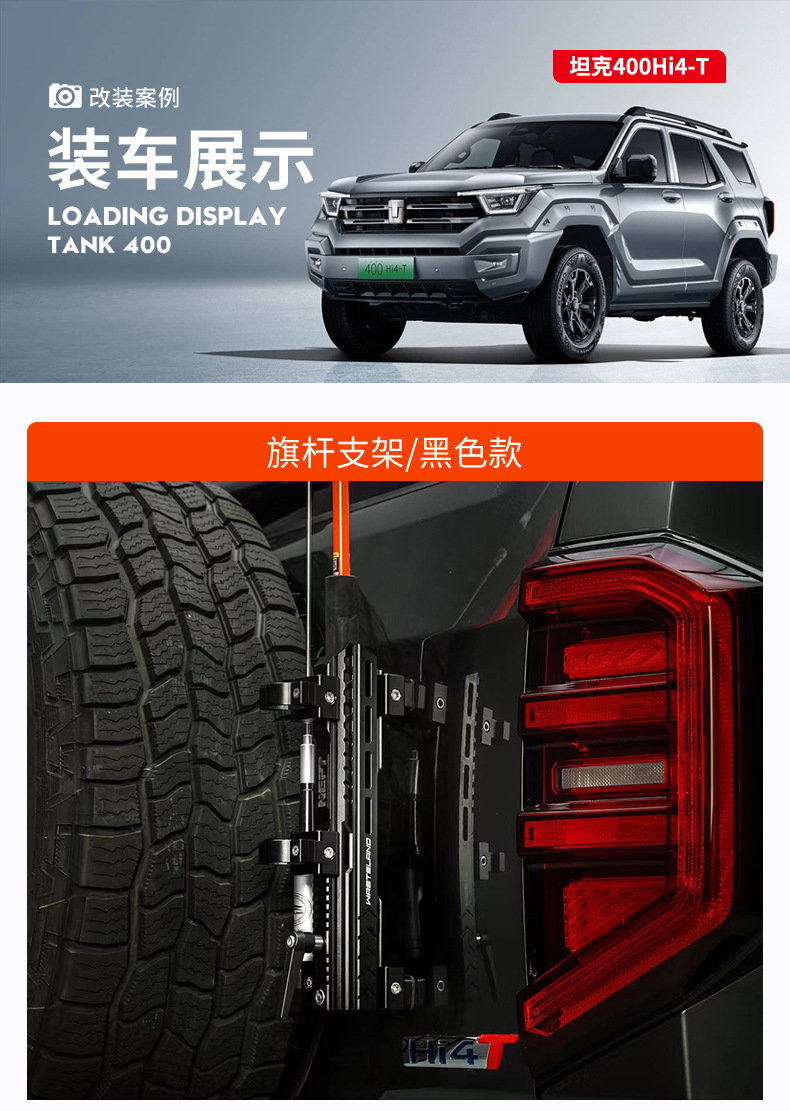 Tank 400 tailgate spare tire flagpole frame modified special aluminum alloy bracket flagpole fixed base off-road accessories