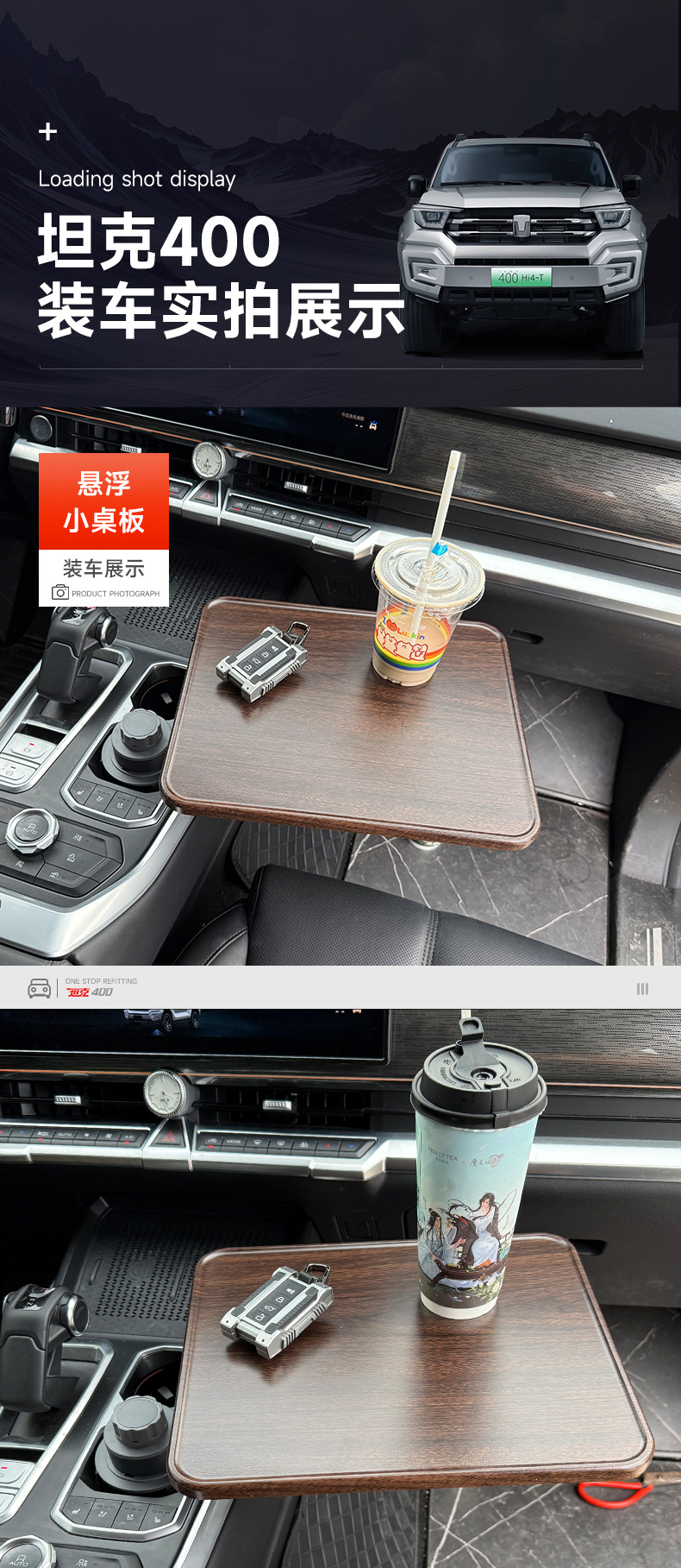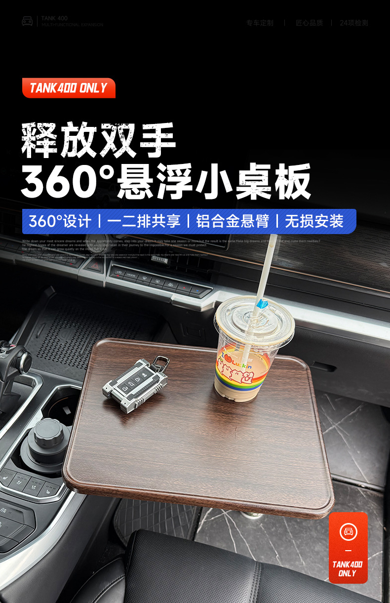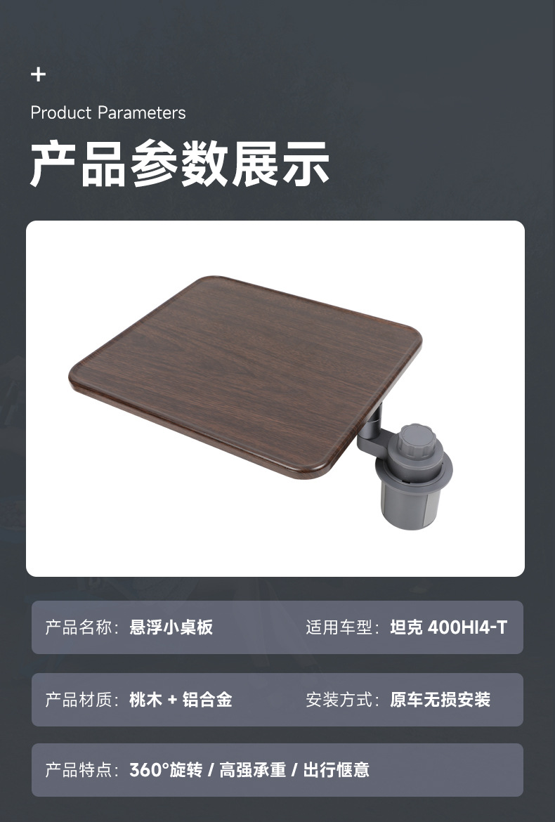 Tank 400 Vehicle-Mounted Suspended Square Small Table Office Self-Driving Tour Dining Table Multi-Functional Rotatable Table Accessories