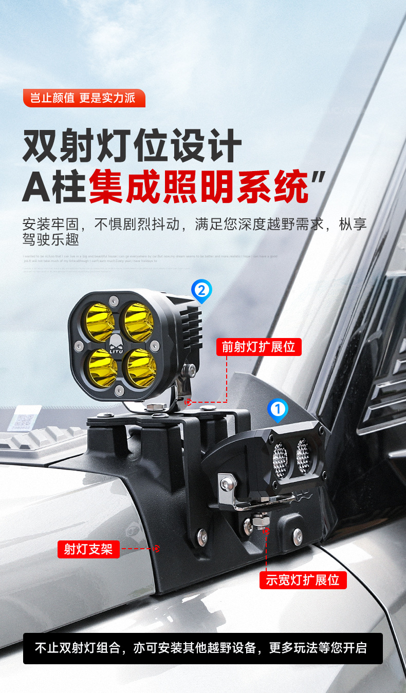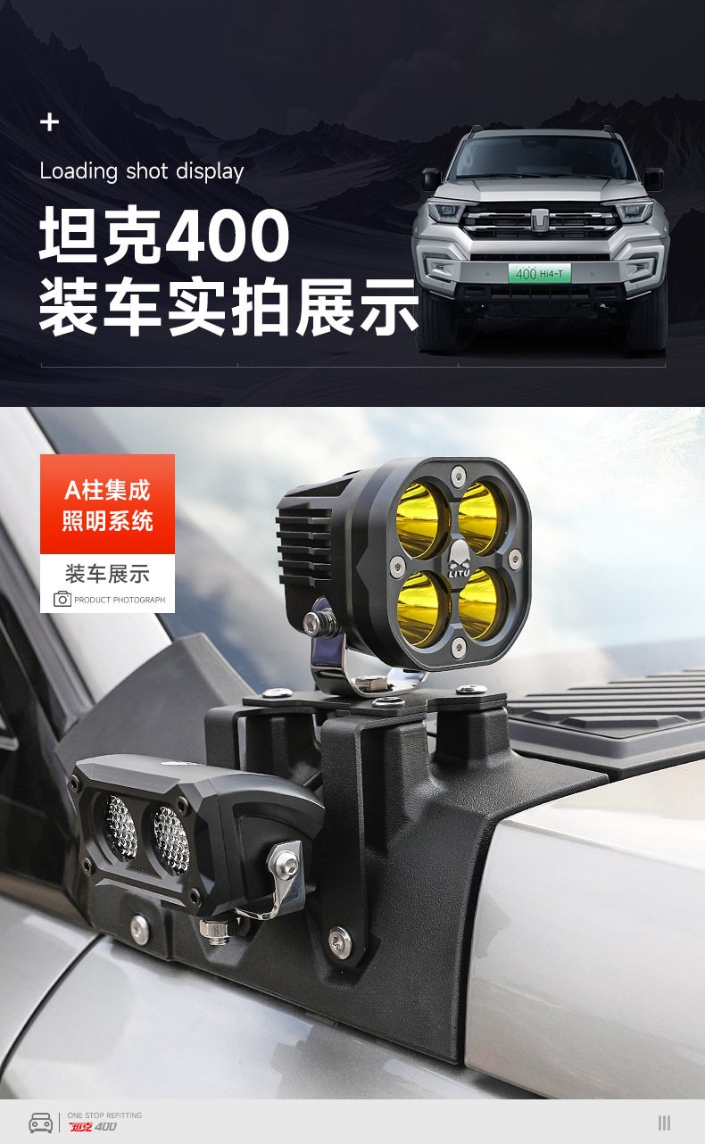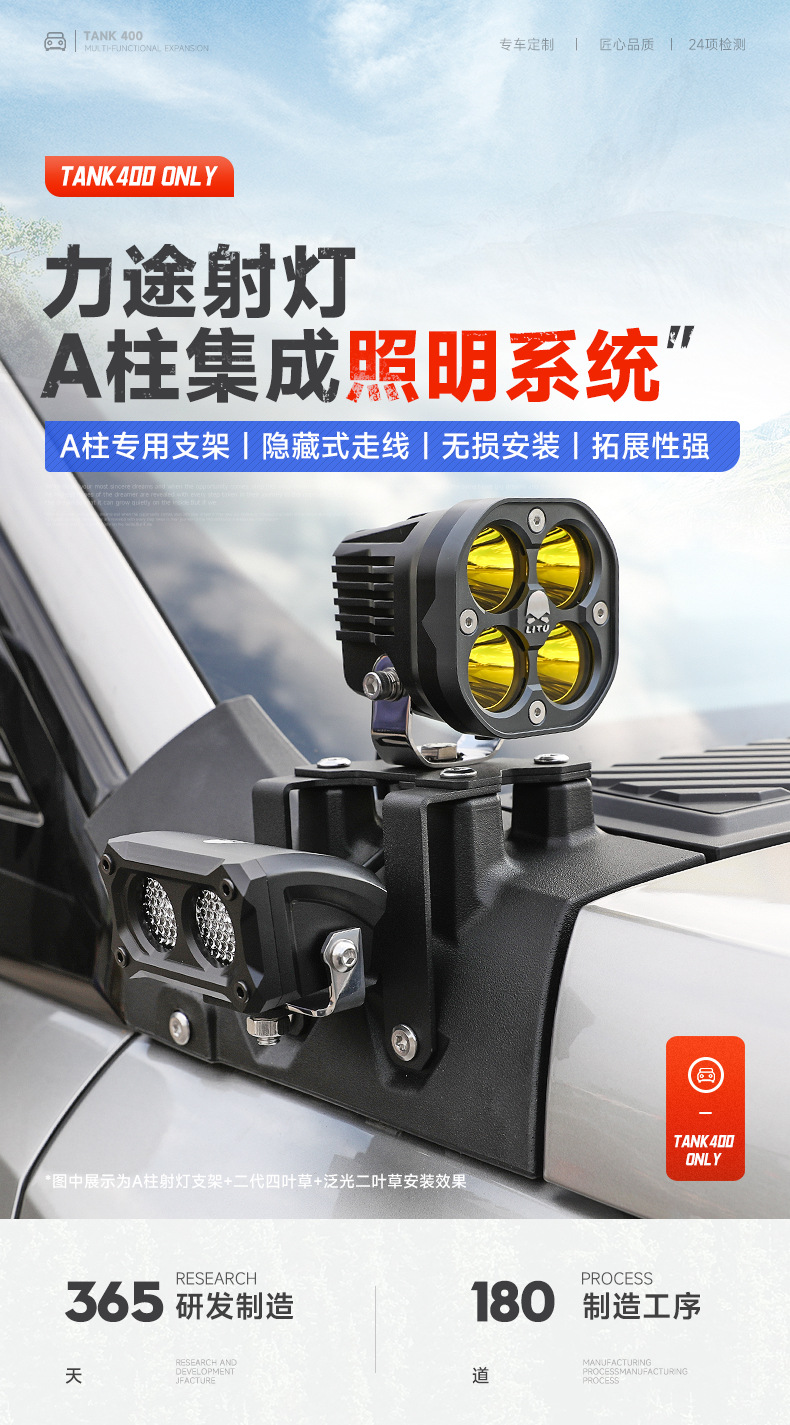 Tank 400A Pillar Cover Spotlight Bracket Refitting Auxiliary Lighting Fog Lamp Stand Base Engine Cover Lamp Stand Trim Accessories