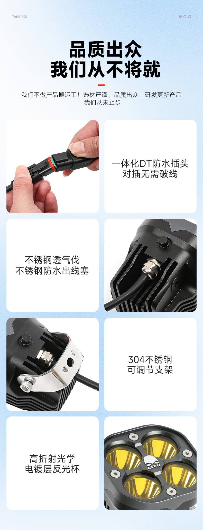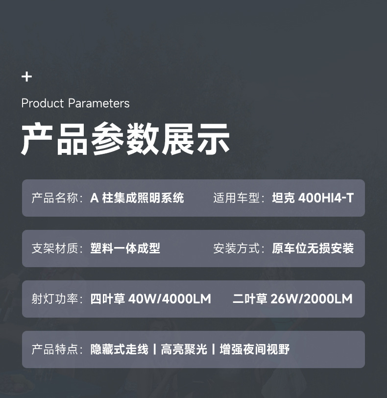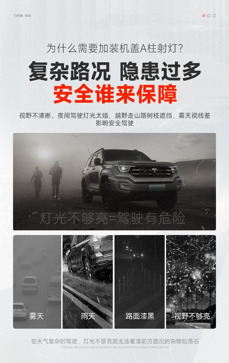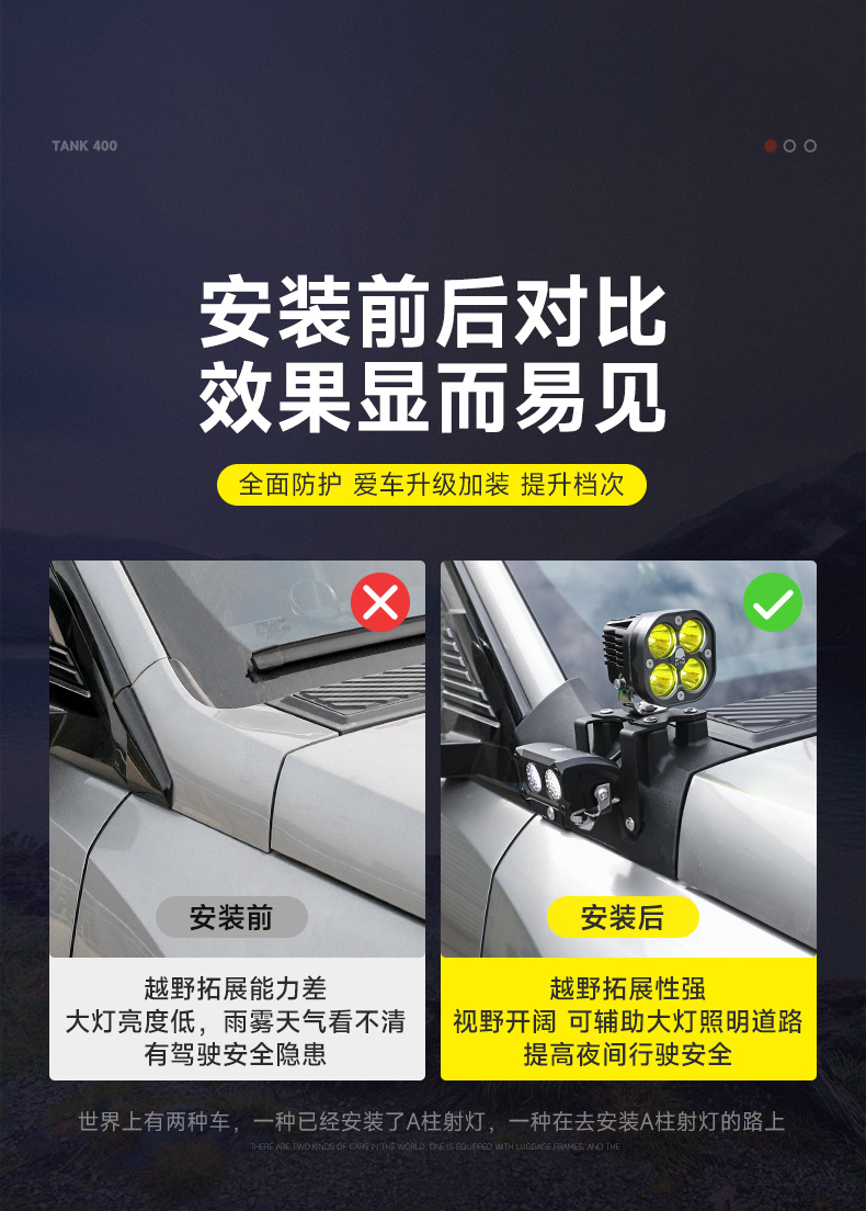 Tank 400A Pillar Cover Spotlight Bracket Refitting Auxiliary Lighting Fog Lamp Stand Base Engine Cover Lamp Stand Trim Accessories