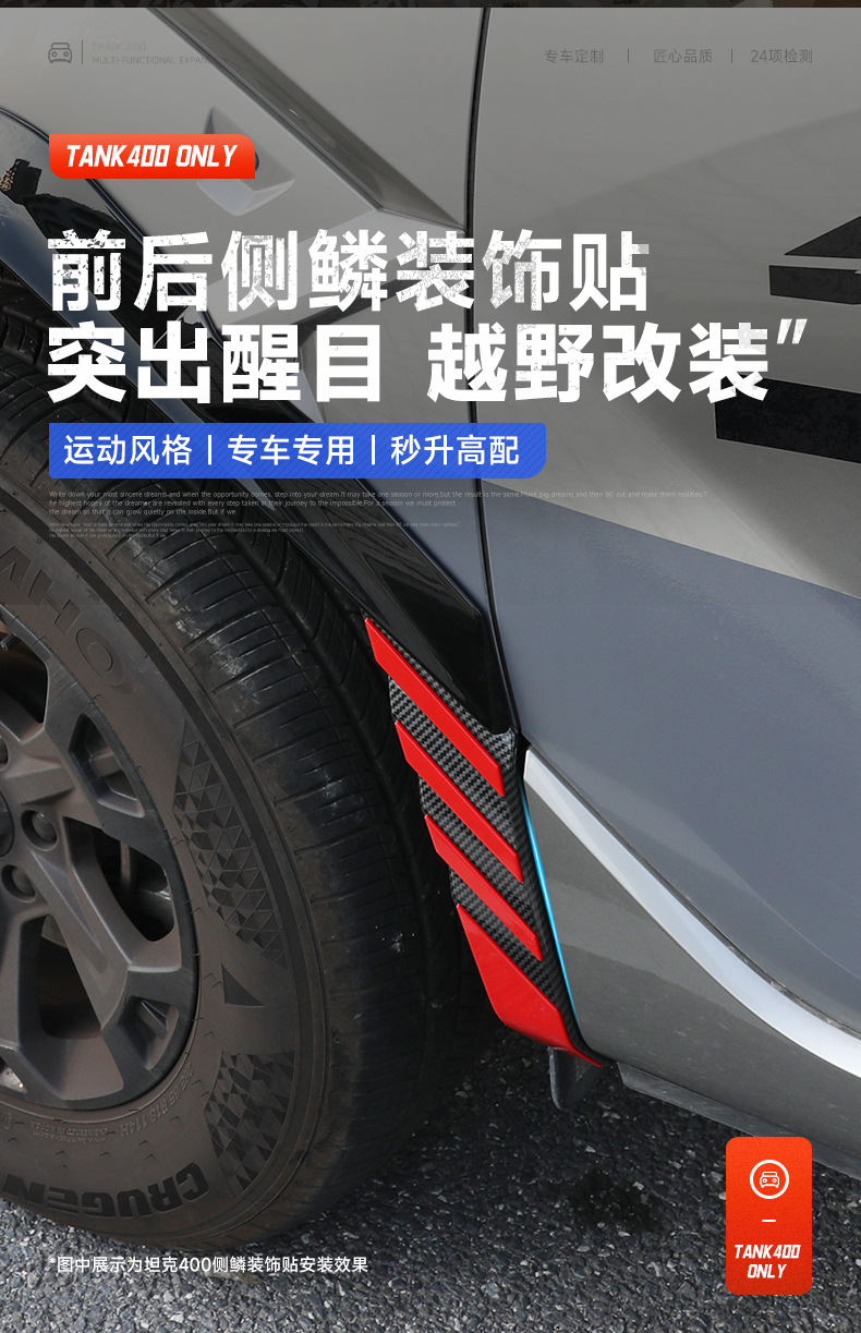 Tank 400Hi4-T front and rear wheel eyebrows red car stickers fender fender door side body changed to red decoration modification