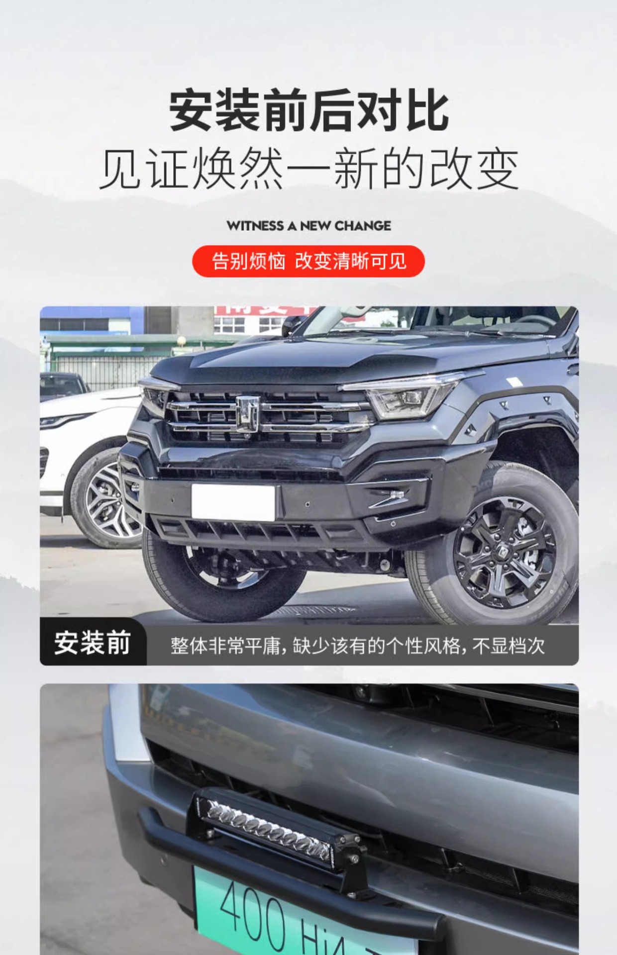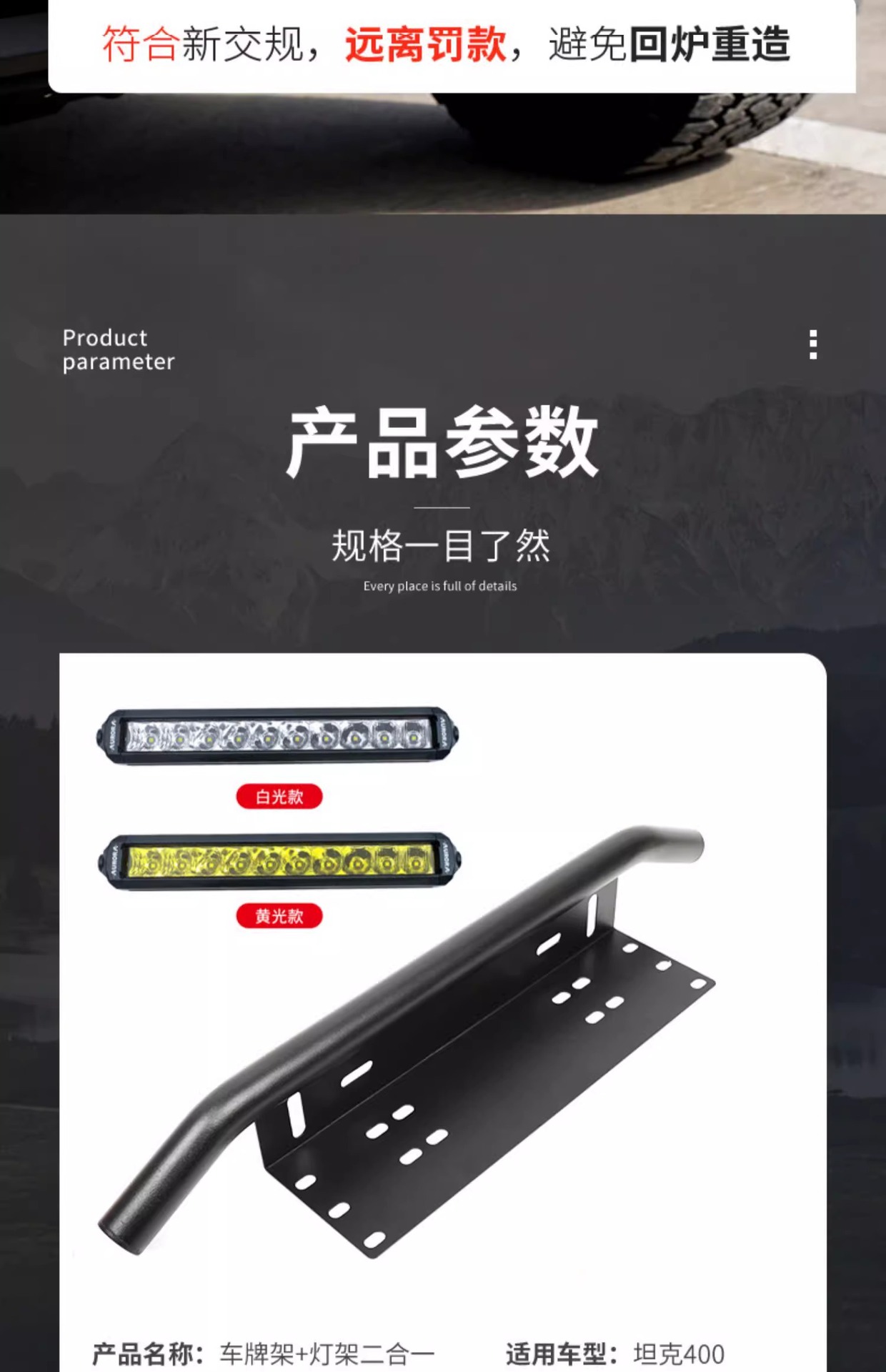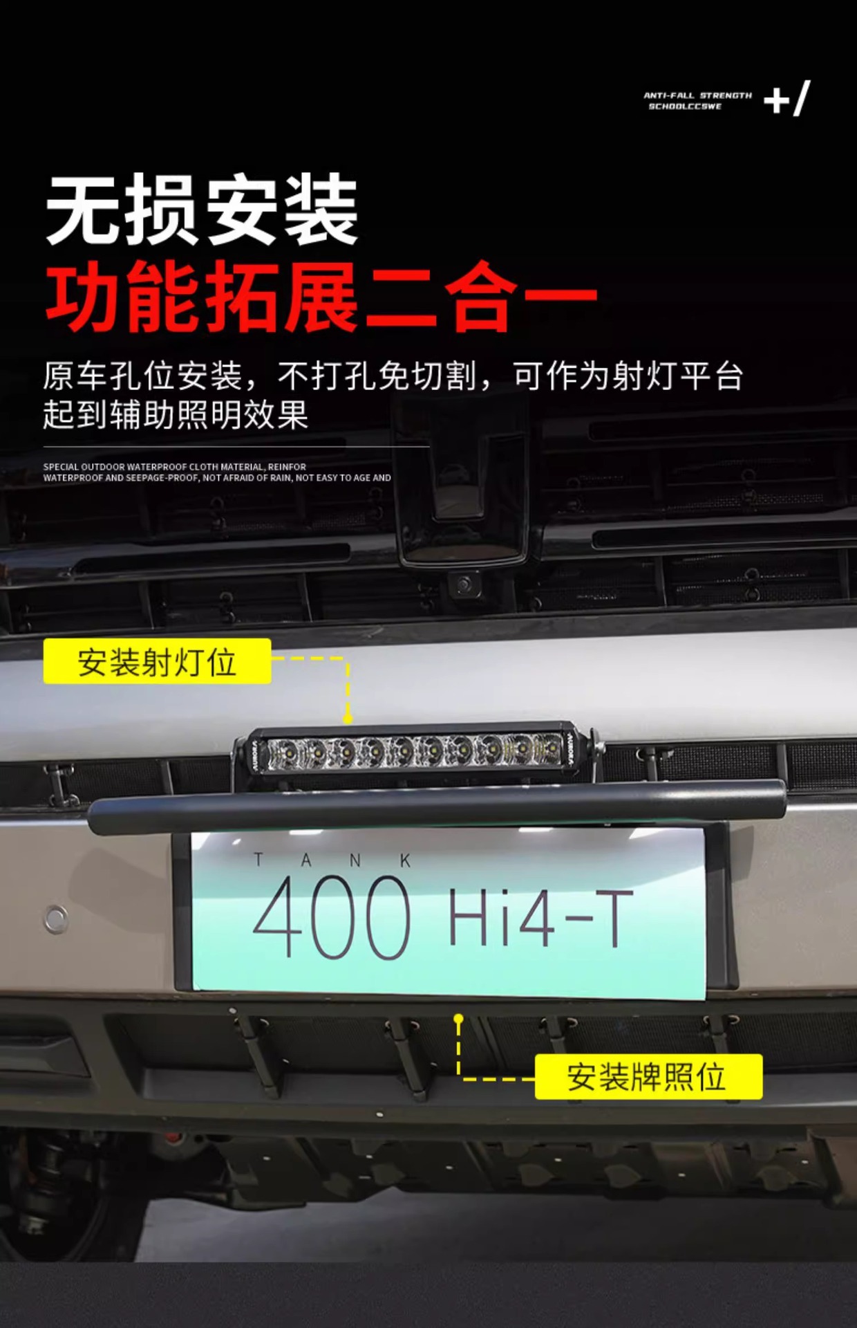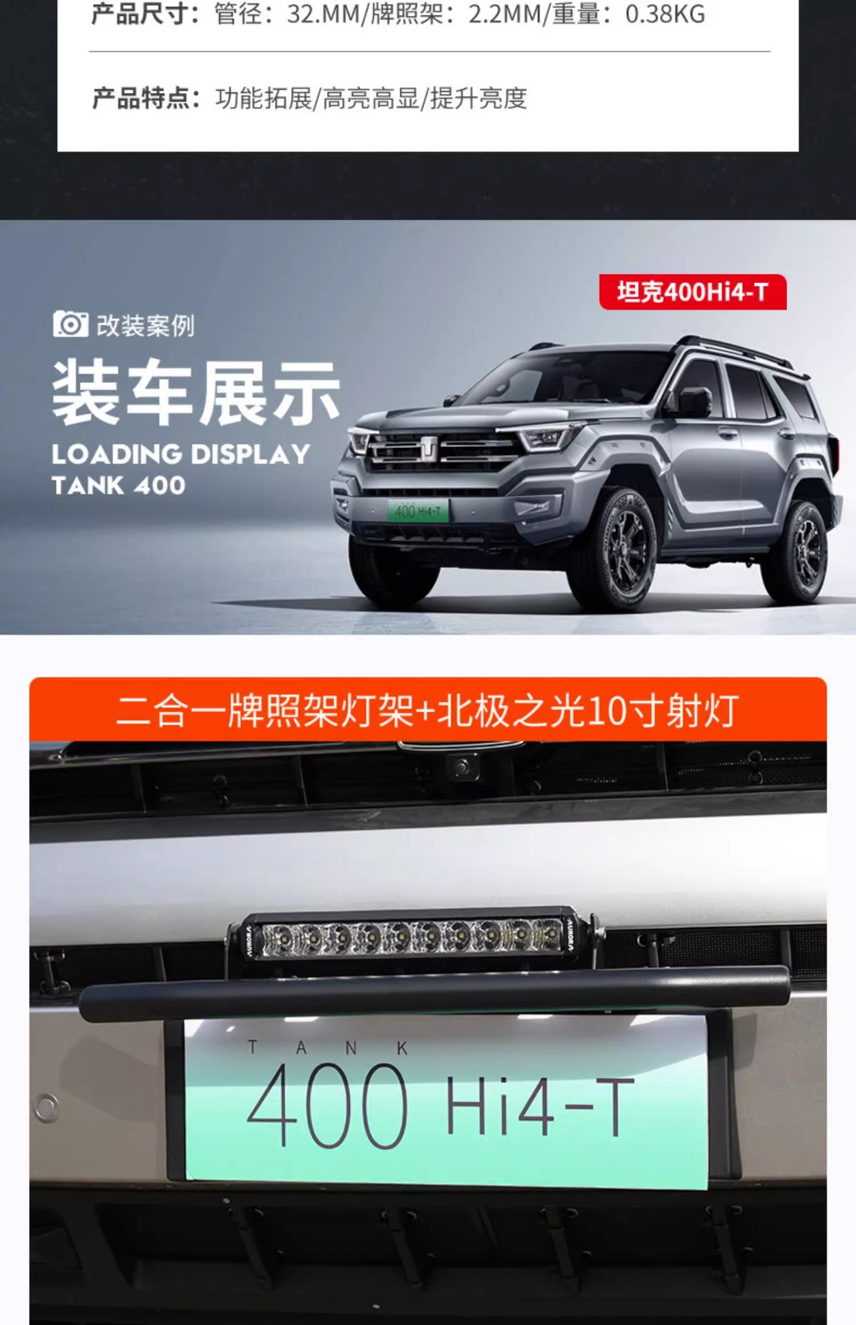 Tank 400Hi4-T Front Bar Lamp Frame Hybrid Vehicle License Plate Frame Spotlight Bracket Integrated Auxiliary Lighting Special Modification