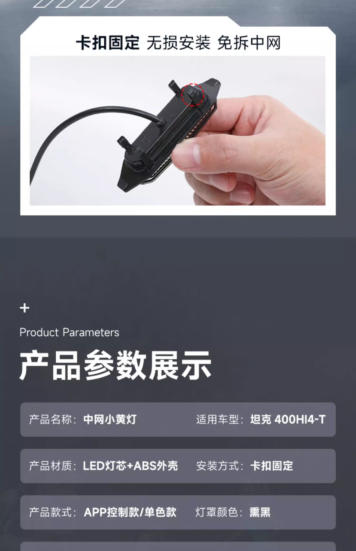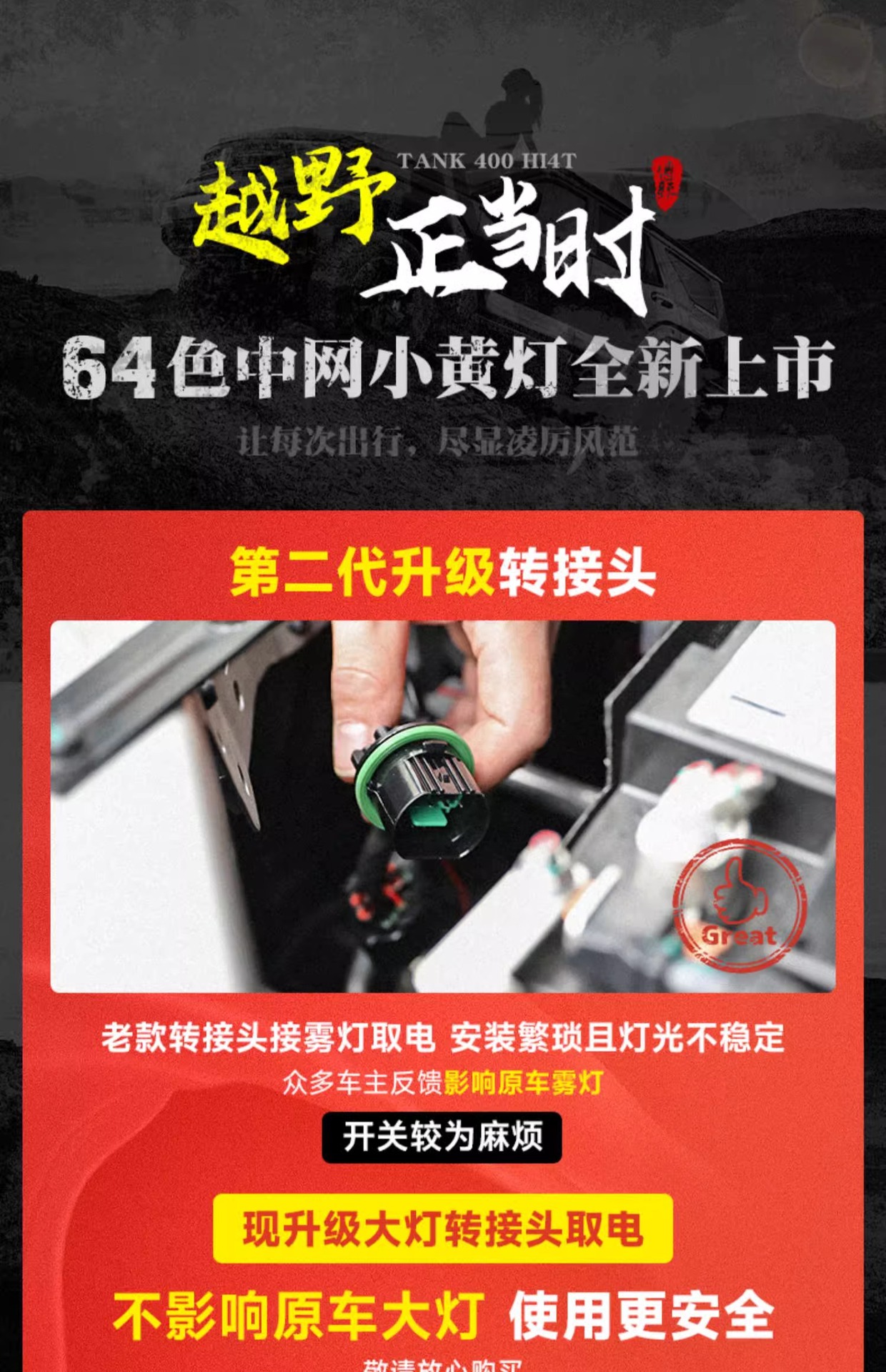 Be the first to review “Tank 400Hi4-T Grille Small Yellow Light Car Exterior Modification Front Face Led Daytime Running Light Colorful Decorative Light” Cancel reply