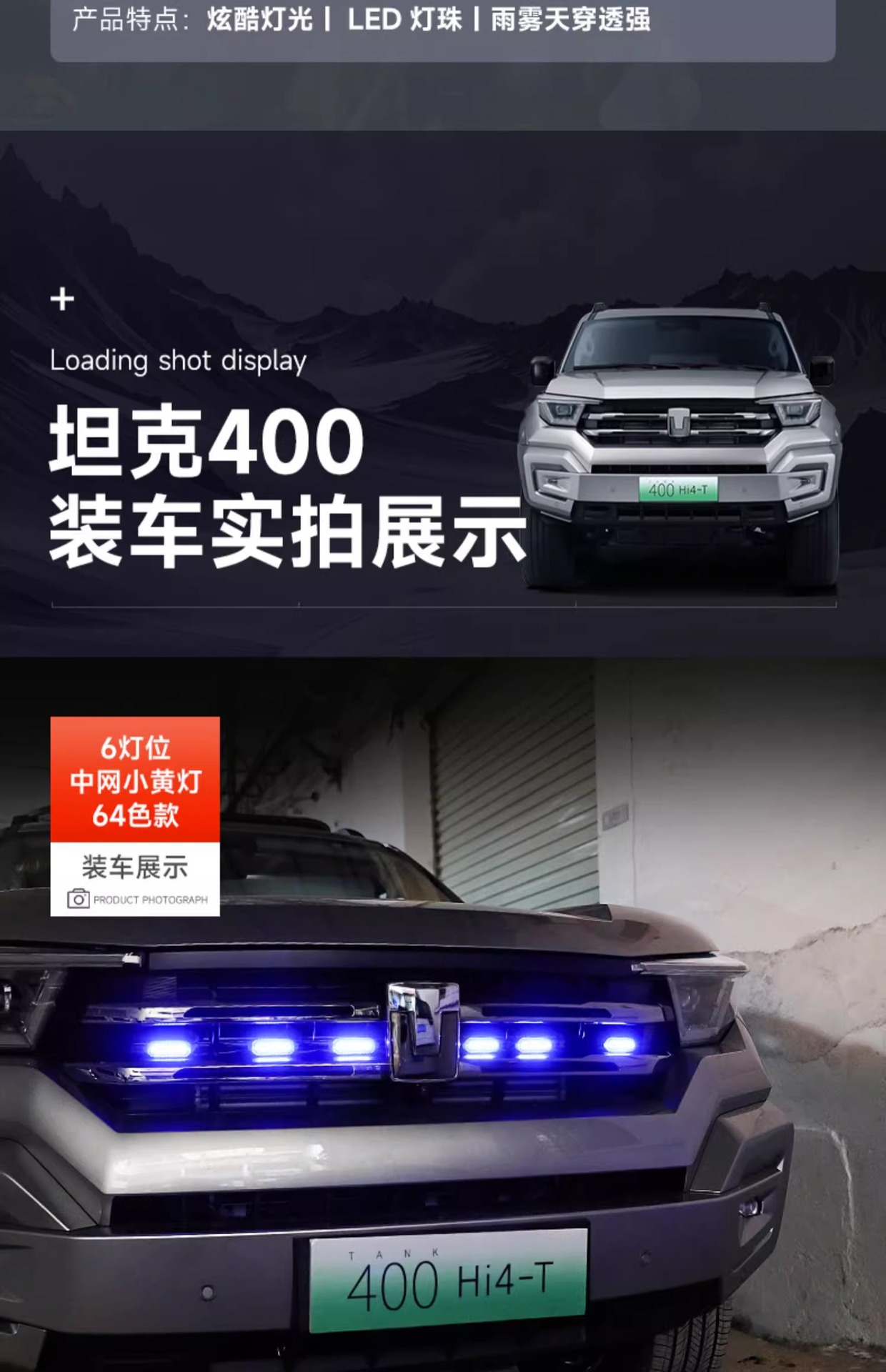 Tank 400Hi4-T Grille Small Yellow Light Car Exterior Modification Front Face Led Daytime Running Light Colorful Decorative Light