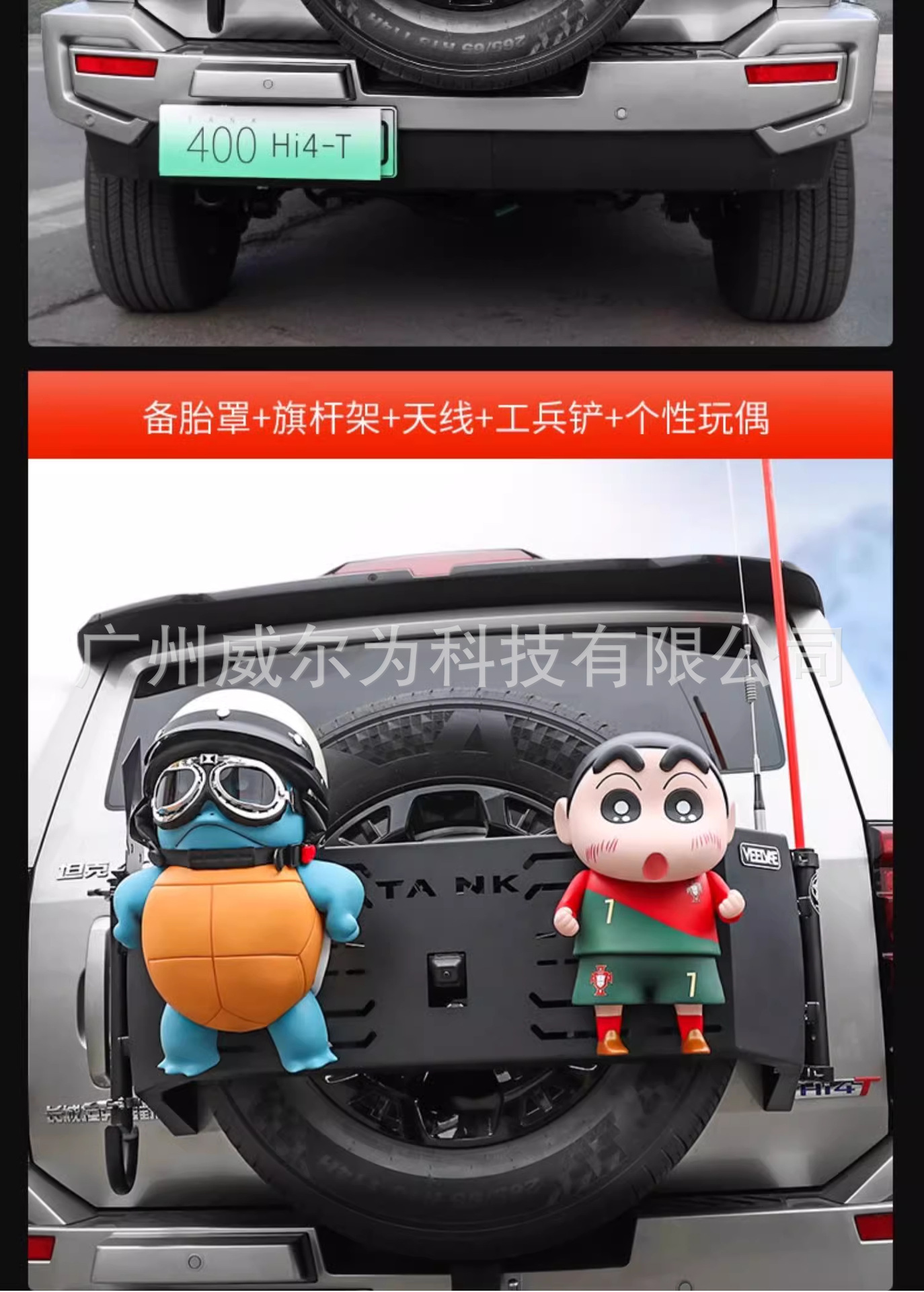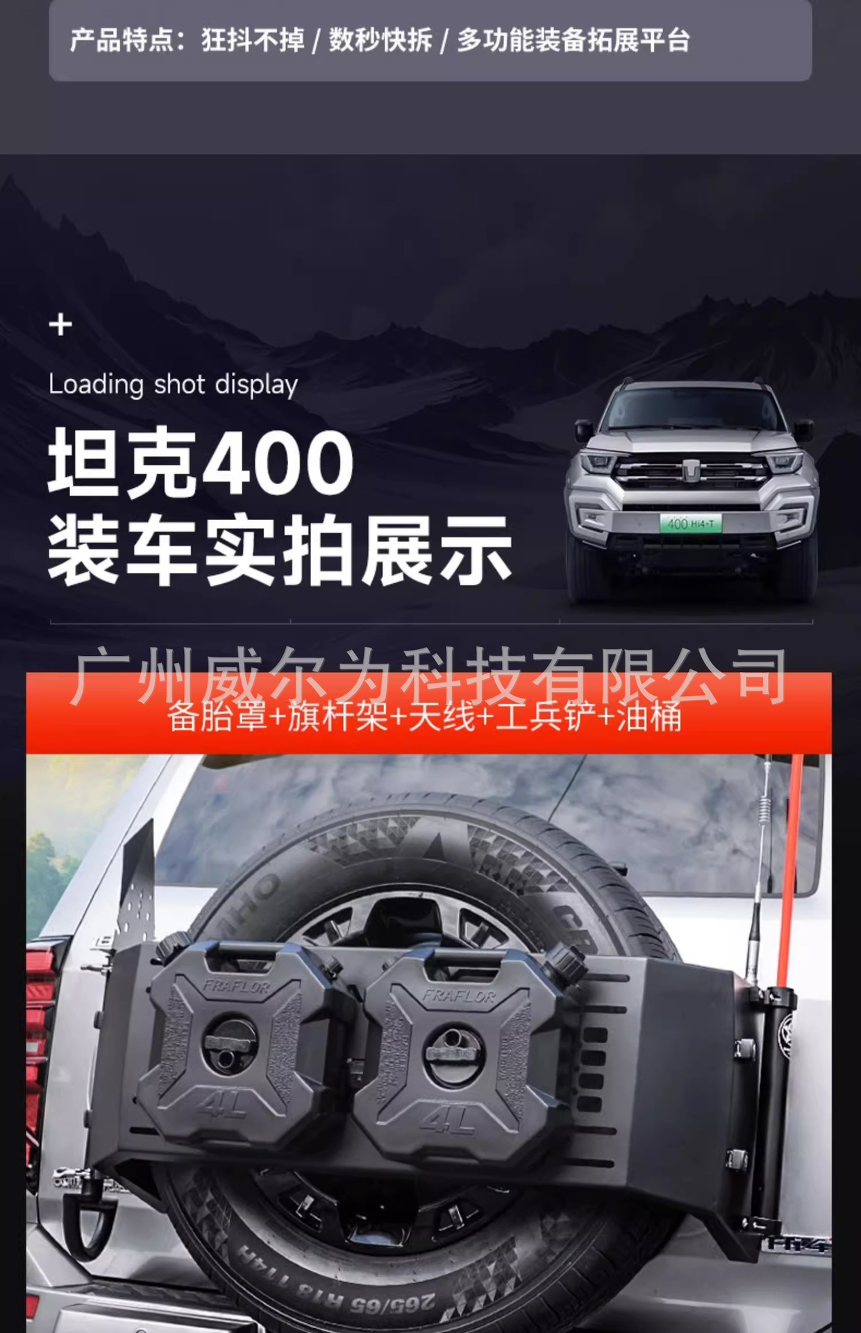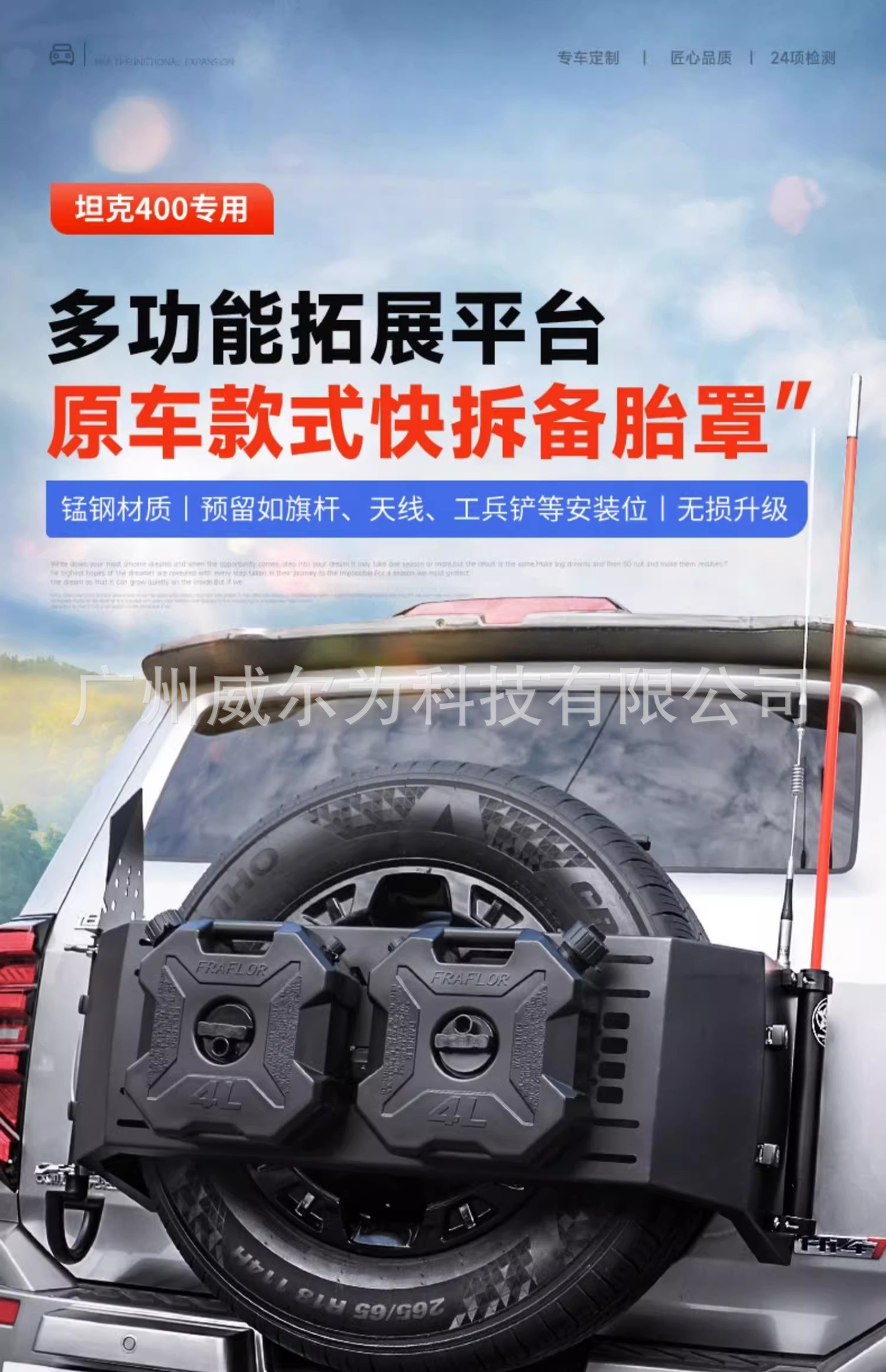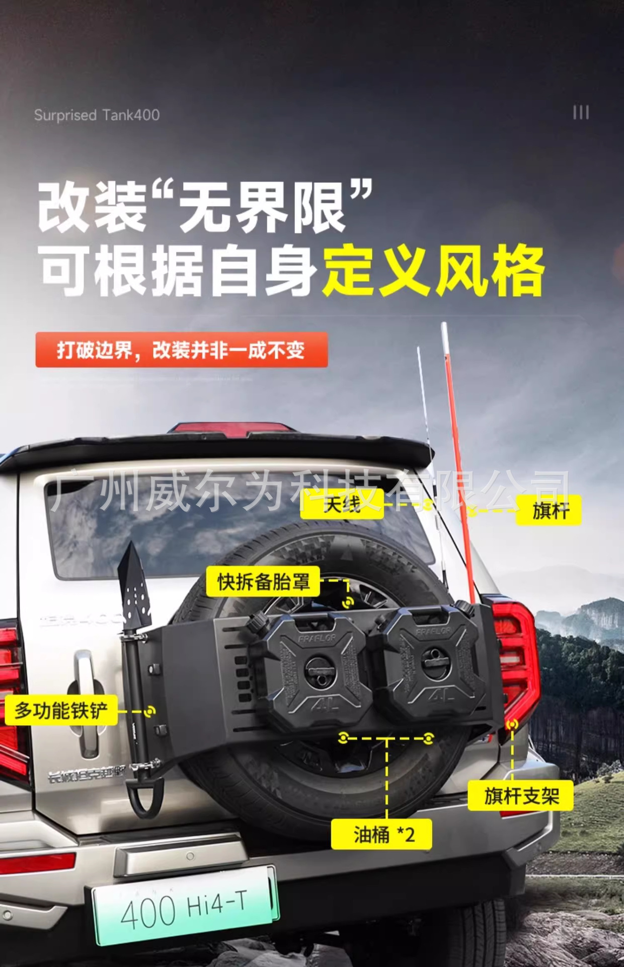 Tank 400hi4-t quick release spare tire cover modification off-road expansion flagpole frame bracket car platform antenna decoration accessories