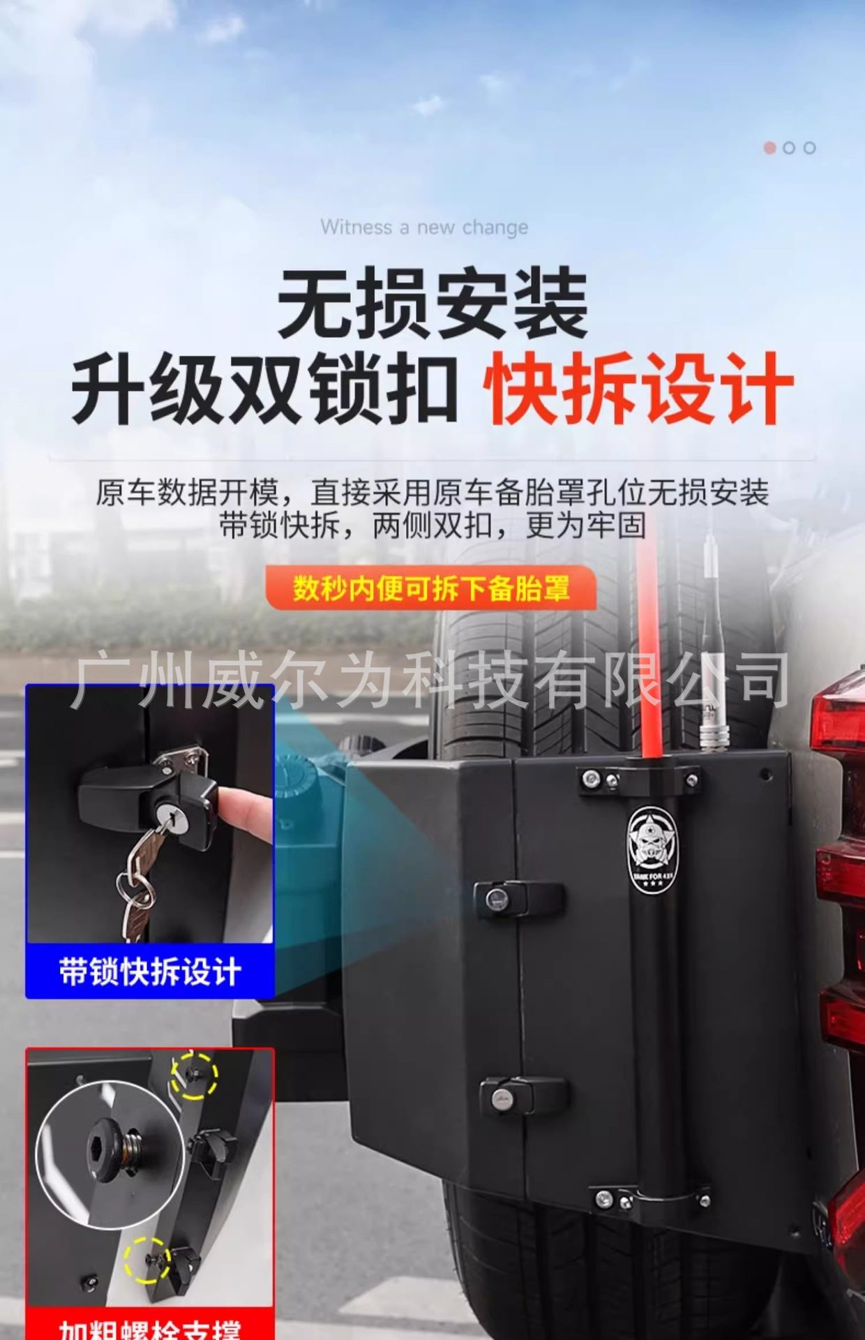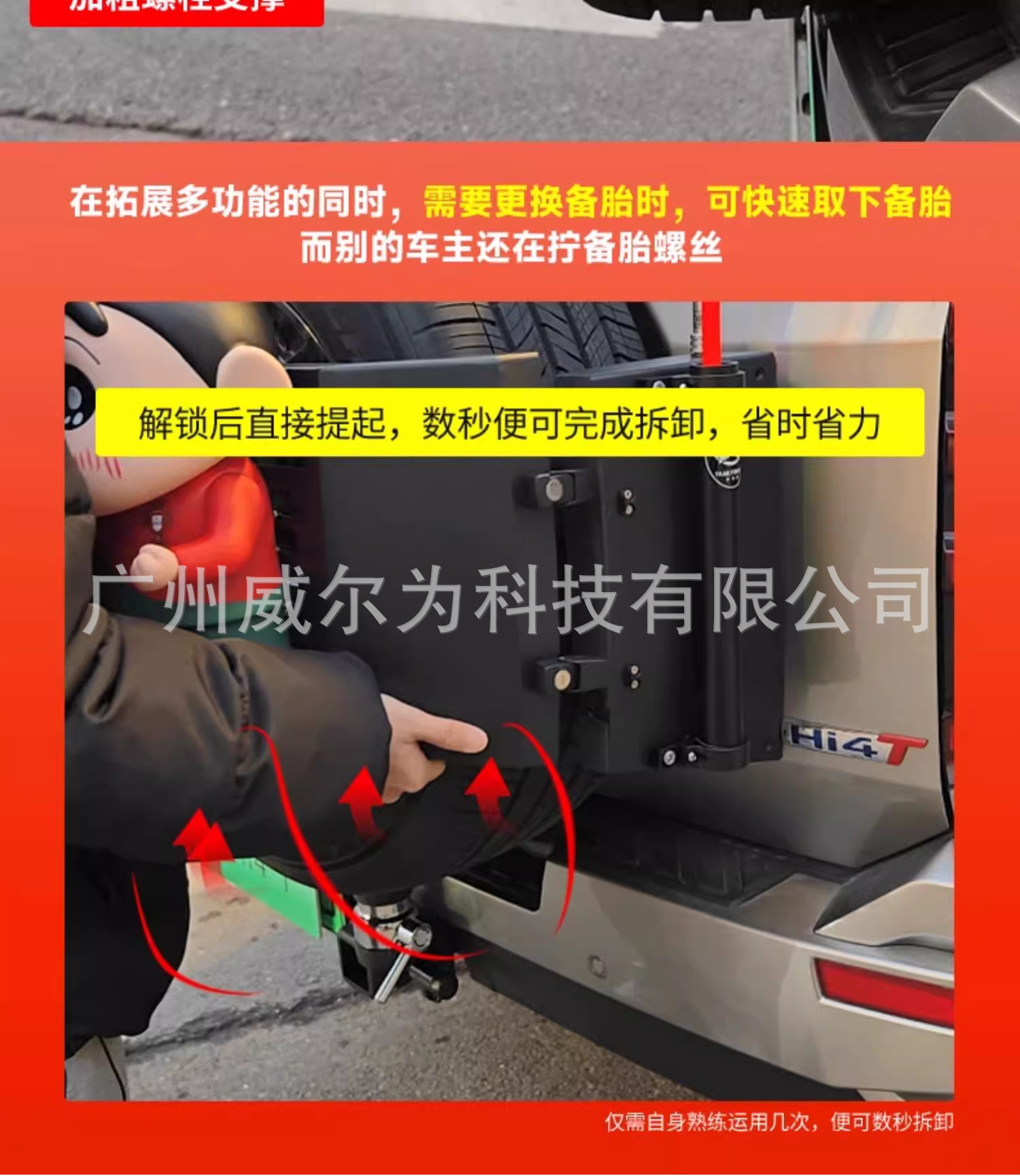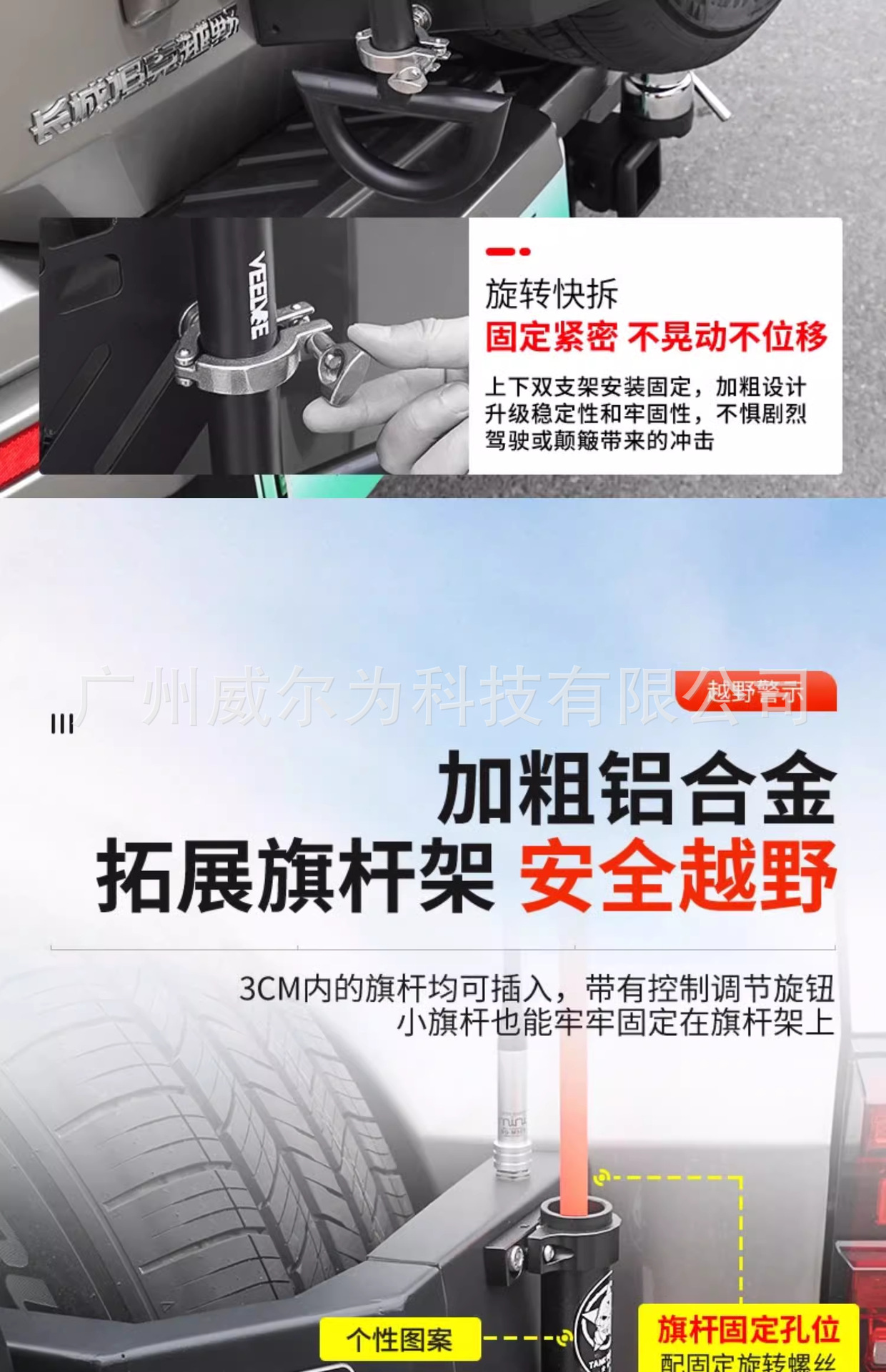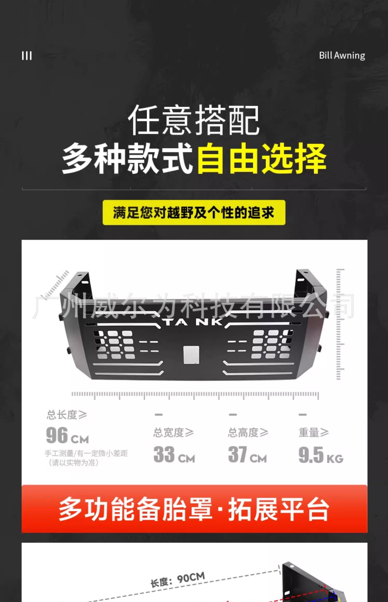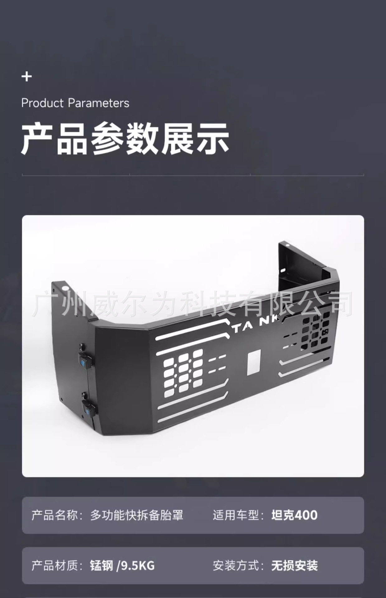 Tank 400hi4-t quick release spare tire cover modification off-road expansion flagpole frame bracket car platform antenna decoration accessories