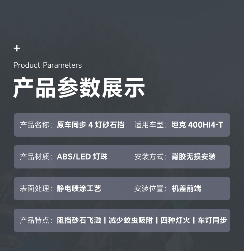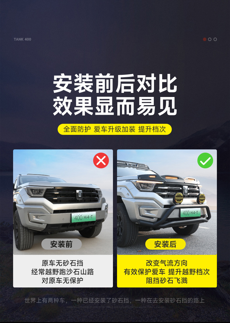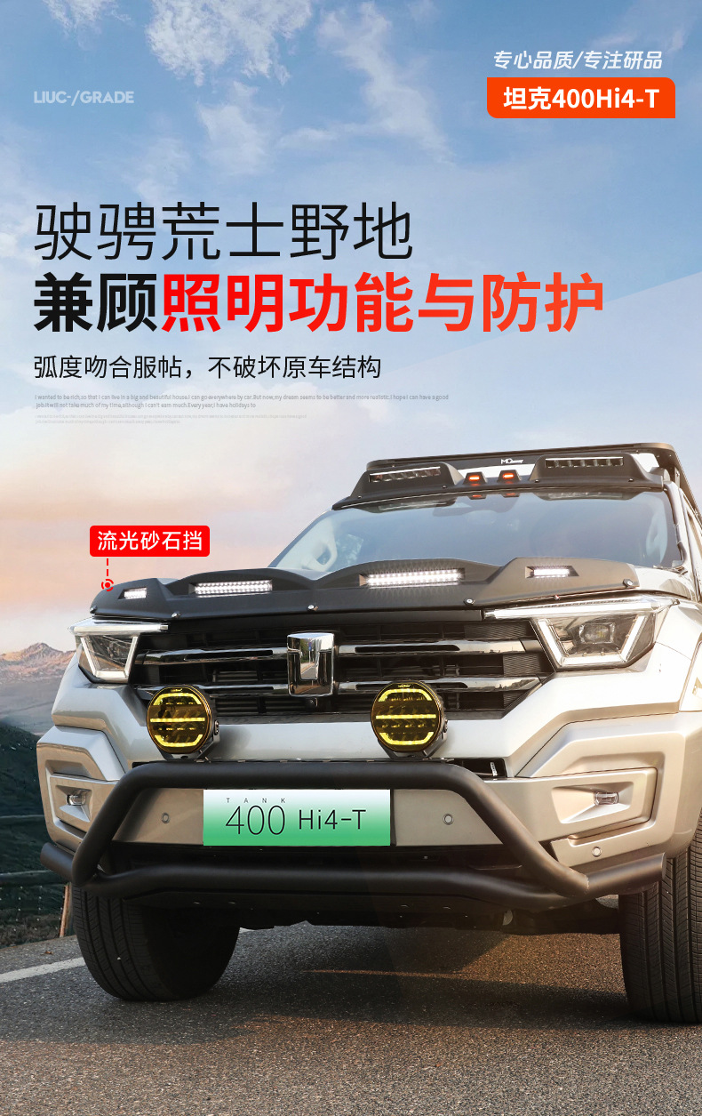 Tank 400Hi4-T Sand Block Machine Cover Off-road Vehicle Top Spotlight Black Samurai Modified Appearance Accessories