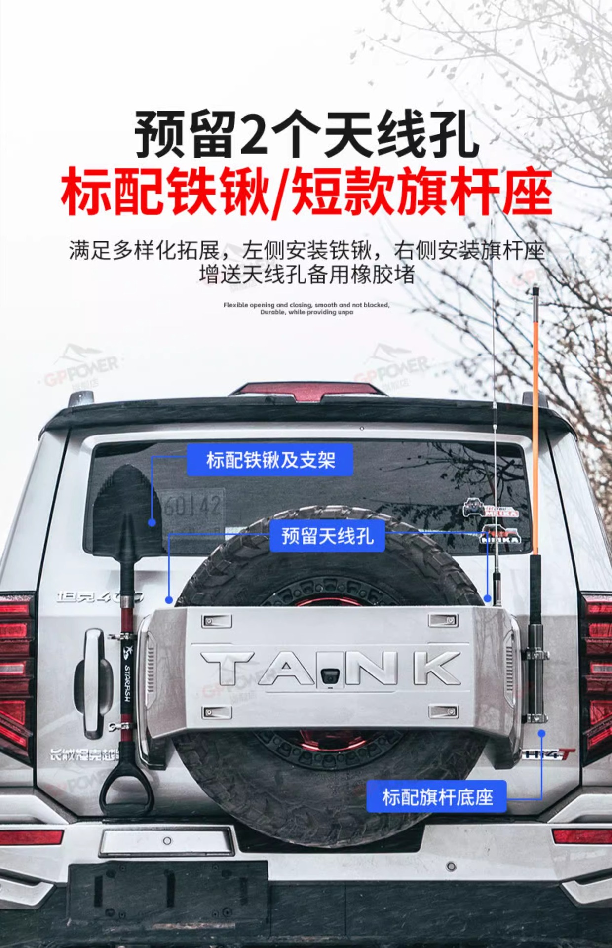 Tank 400hi4-t spare tire cover extension kit expansion MK Meika modified flagpole antenna iron hose bracket accessories