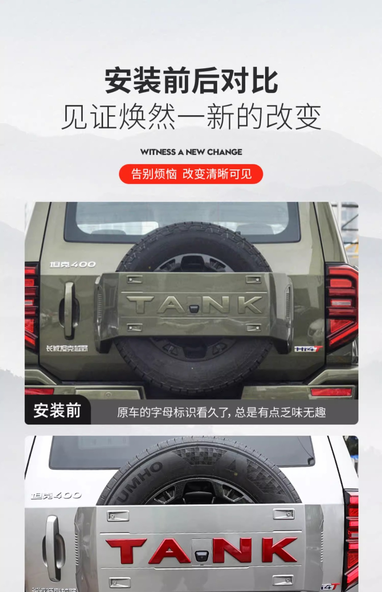 Tank 400Hi4-T spare tire cover modification car logo color change red car logo cover Chinese mesh logo exterior decoration special upgrade supplies