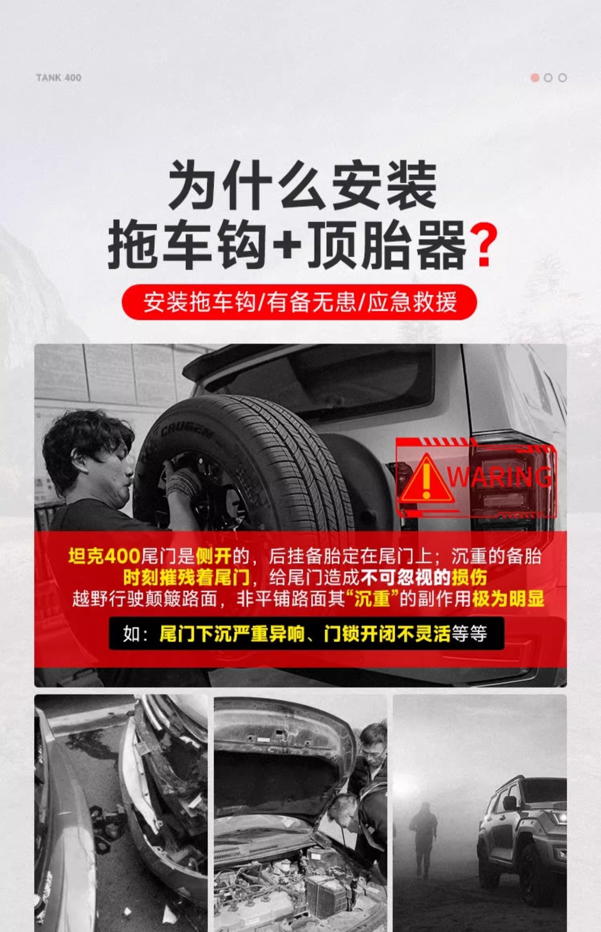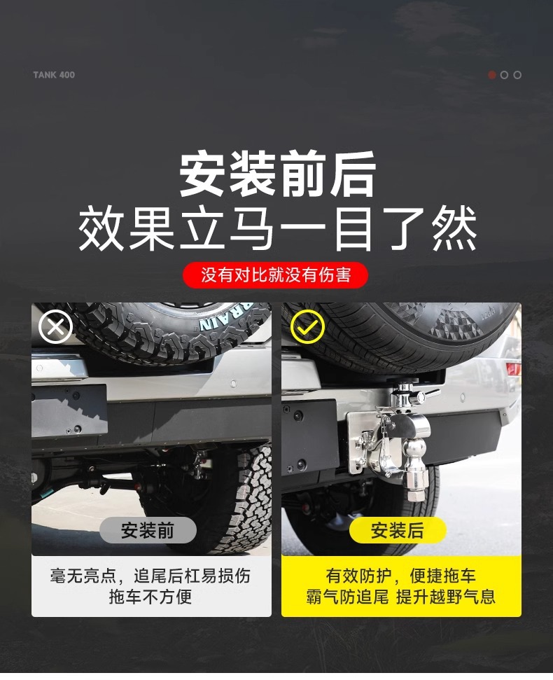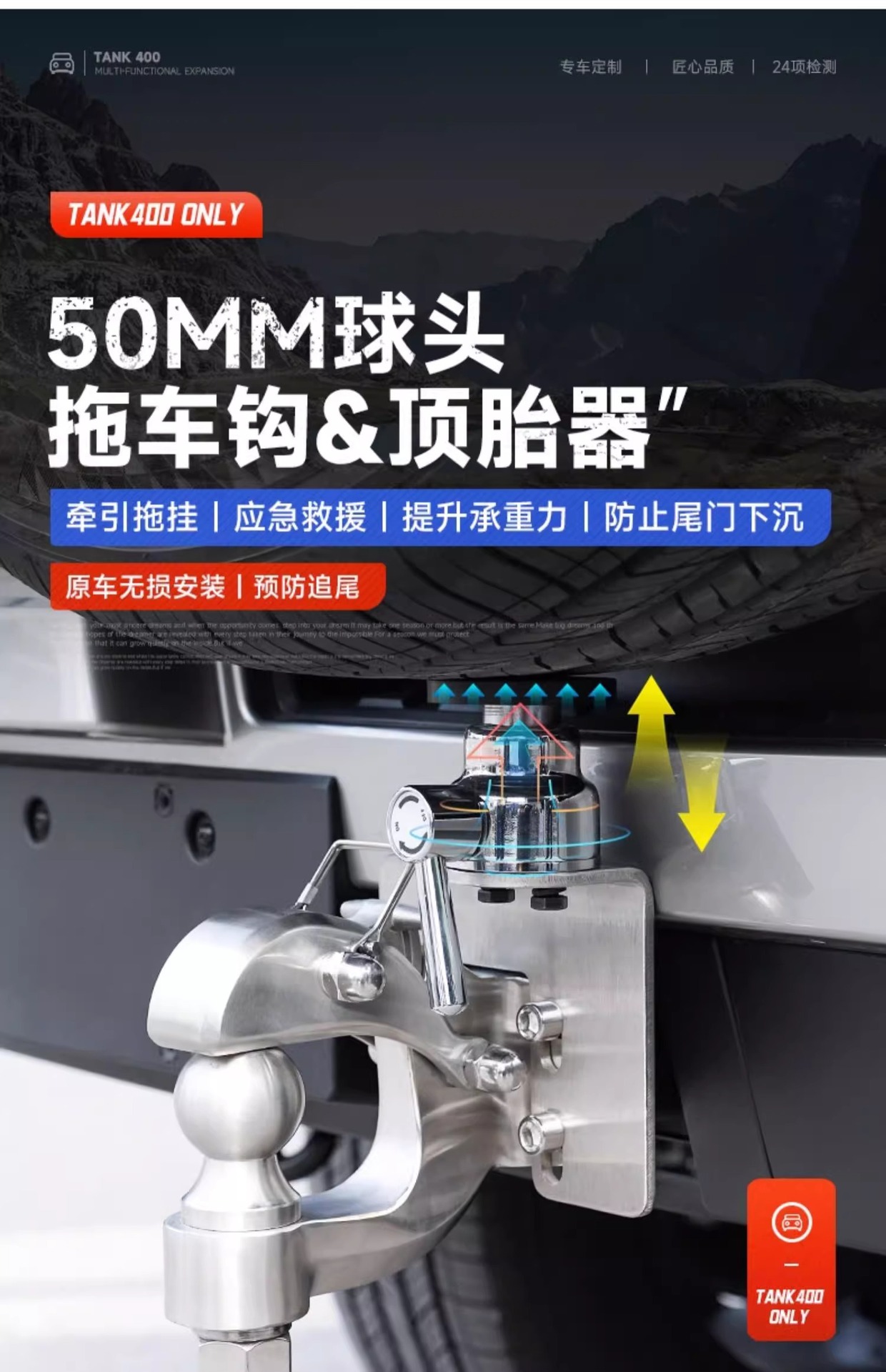 Tank 400Hi4-T trailer hook off-road modification special 24 square trailer hook stainless steel top tire decoration