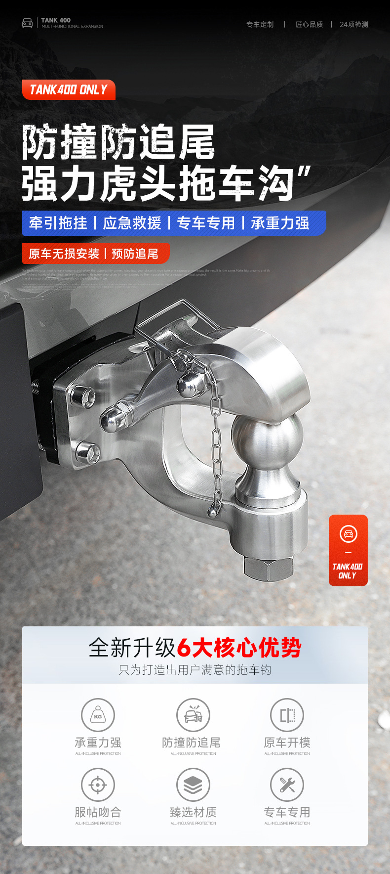 Tank 400hi4-t Trailer Hook Special for Off-road Modification 24 Rear Bars Stainless Steel Trailer Arm Hook Accessories Decoration