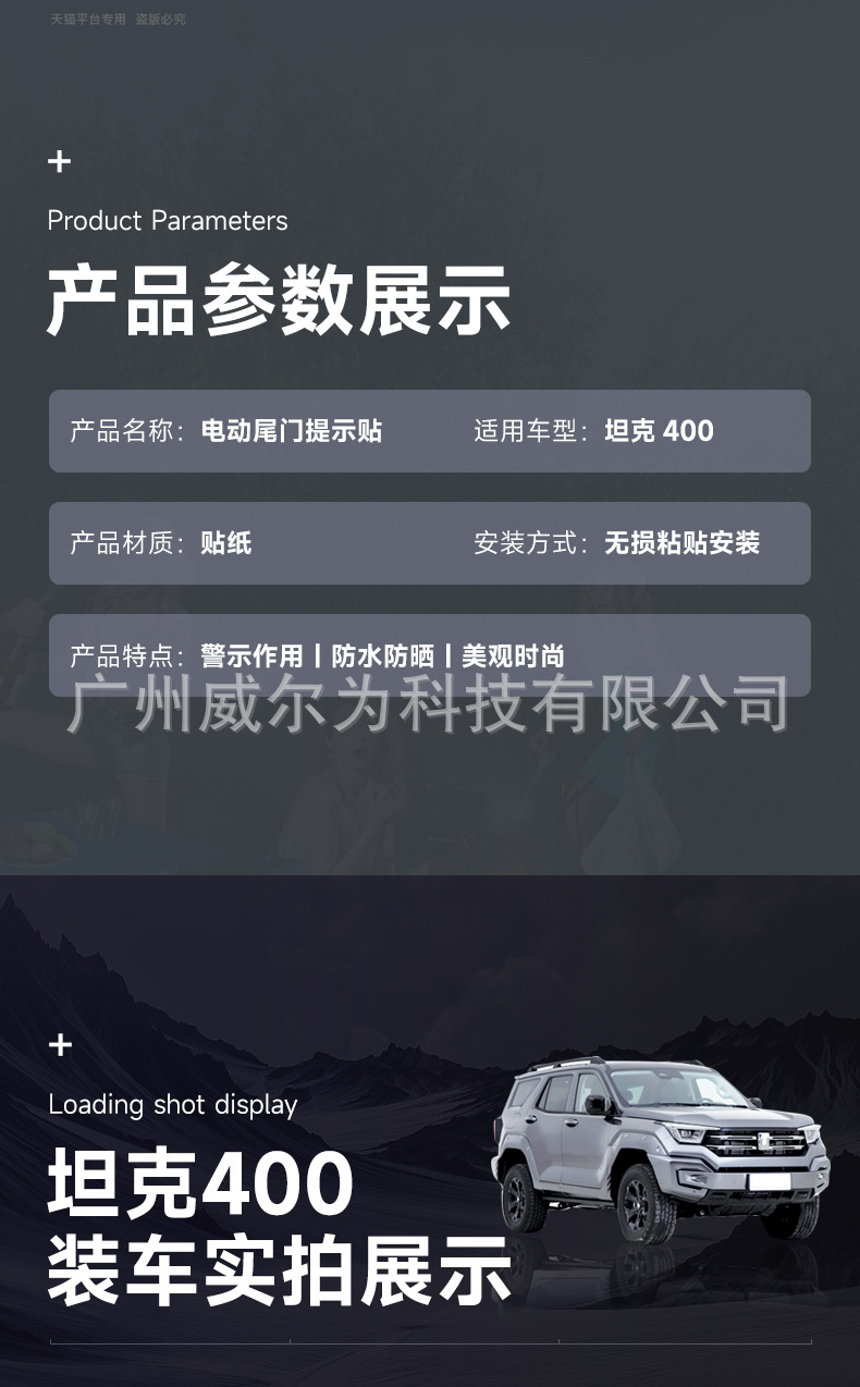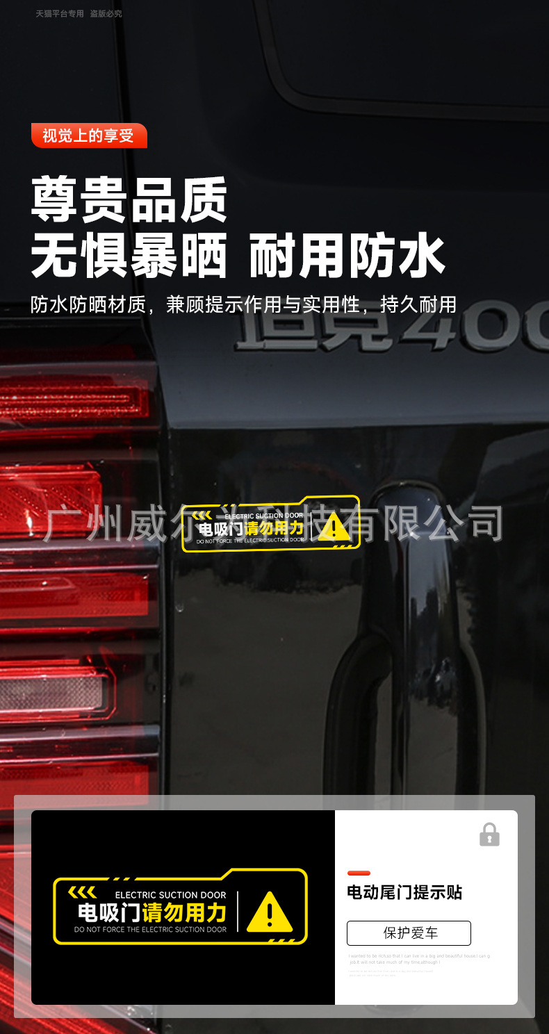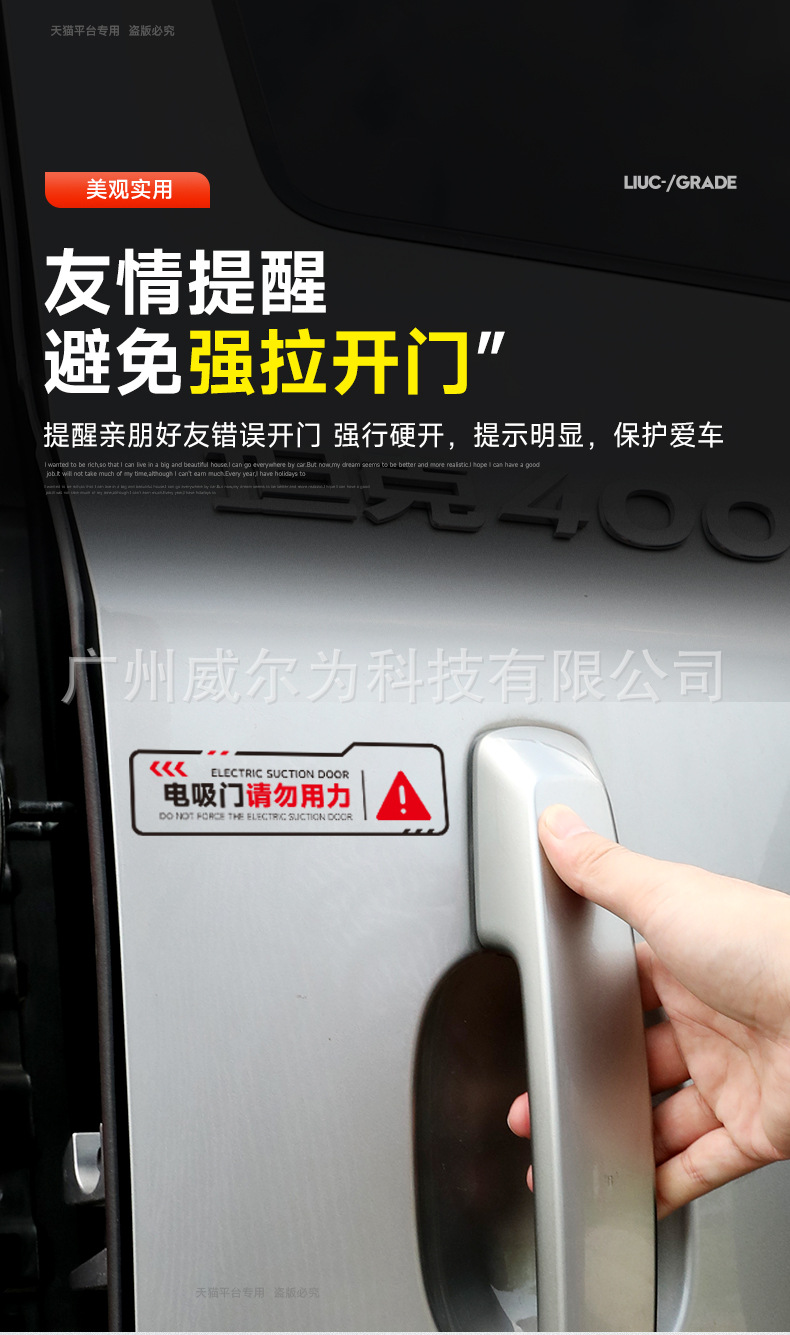 Tank 400Hi4T Electric Suction Tailgate Reminder Sticker Electric Tailgate Special Trunk Warning Sticker Appearance Accessories