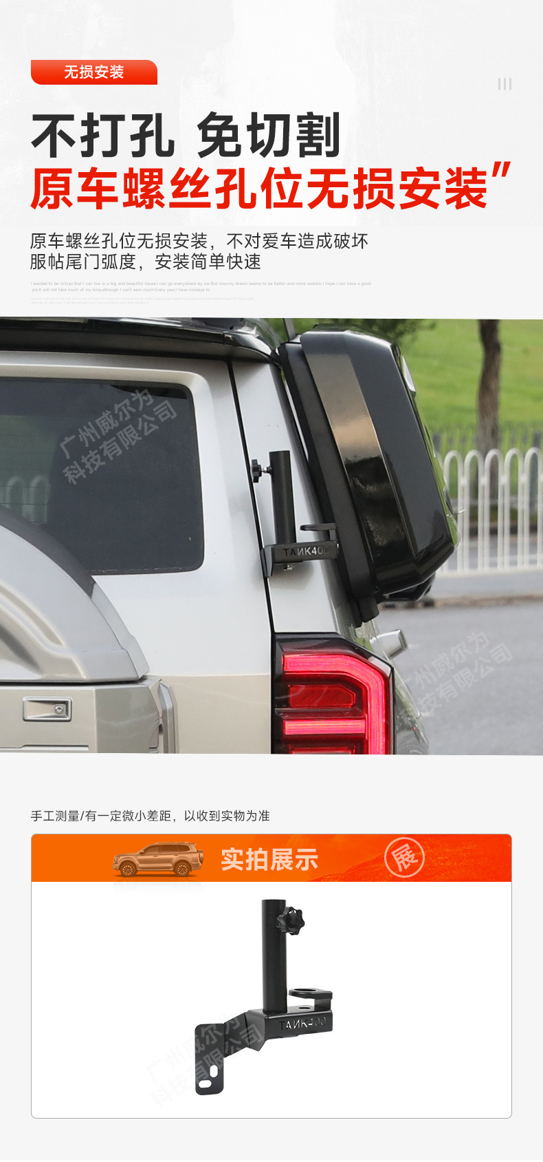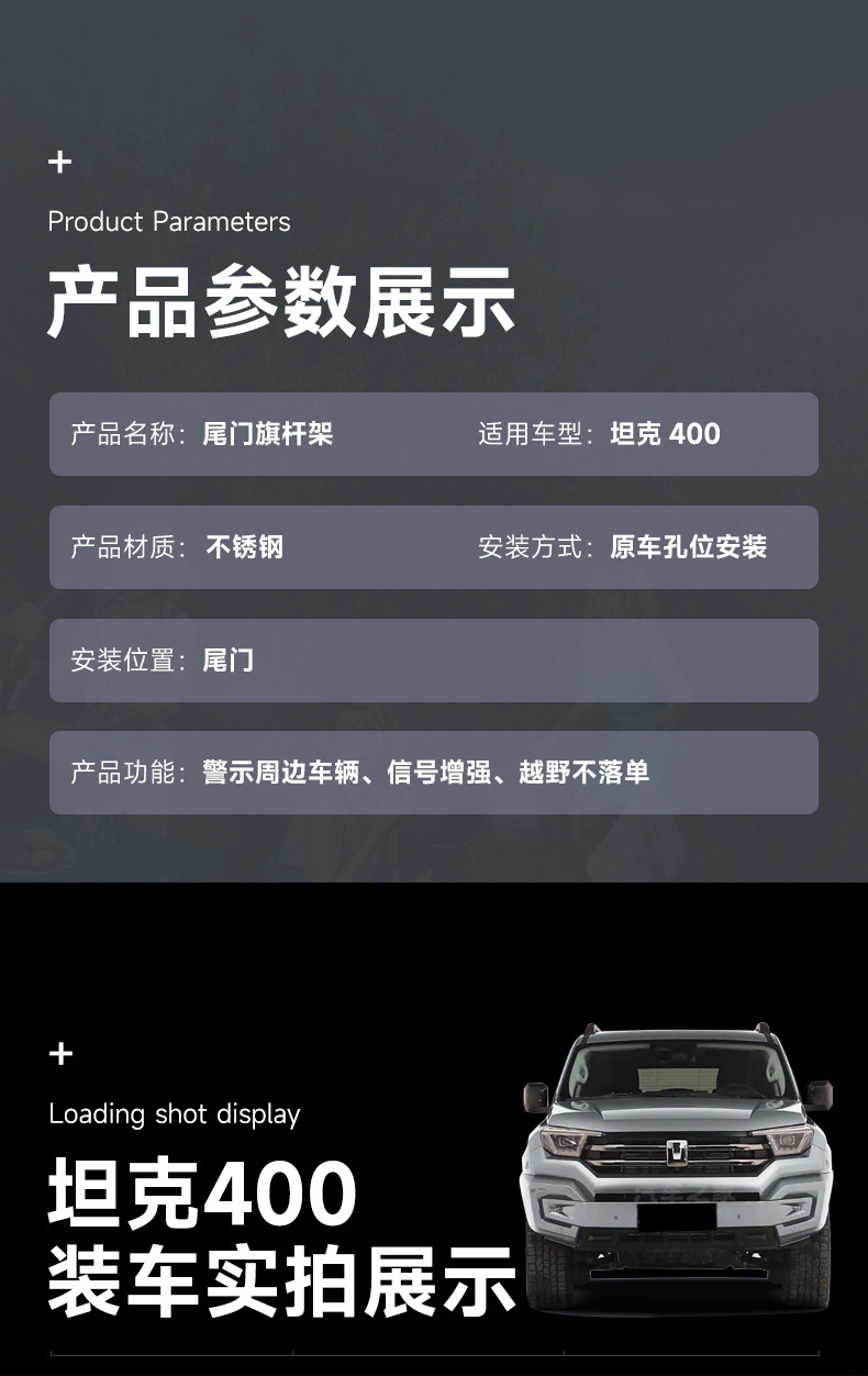 Tank 400Hi4T tailgate flagpole frame modified tailgate antenna shovel bracket special off-road vehicle appearance parts