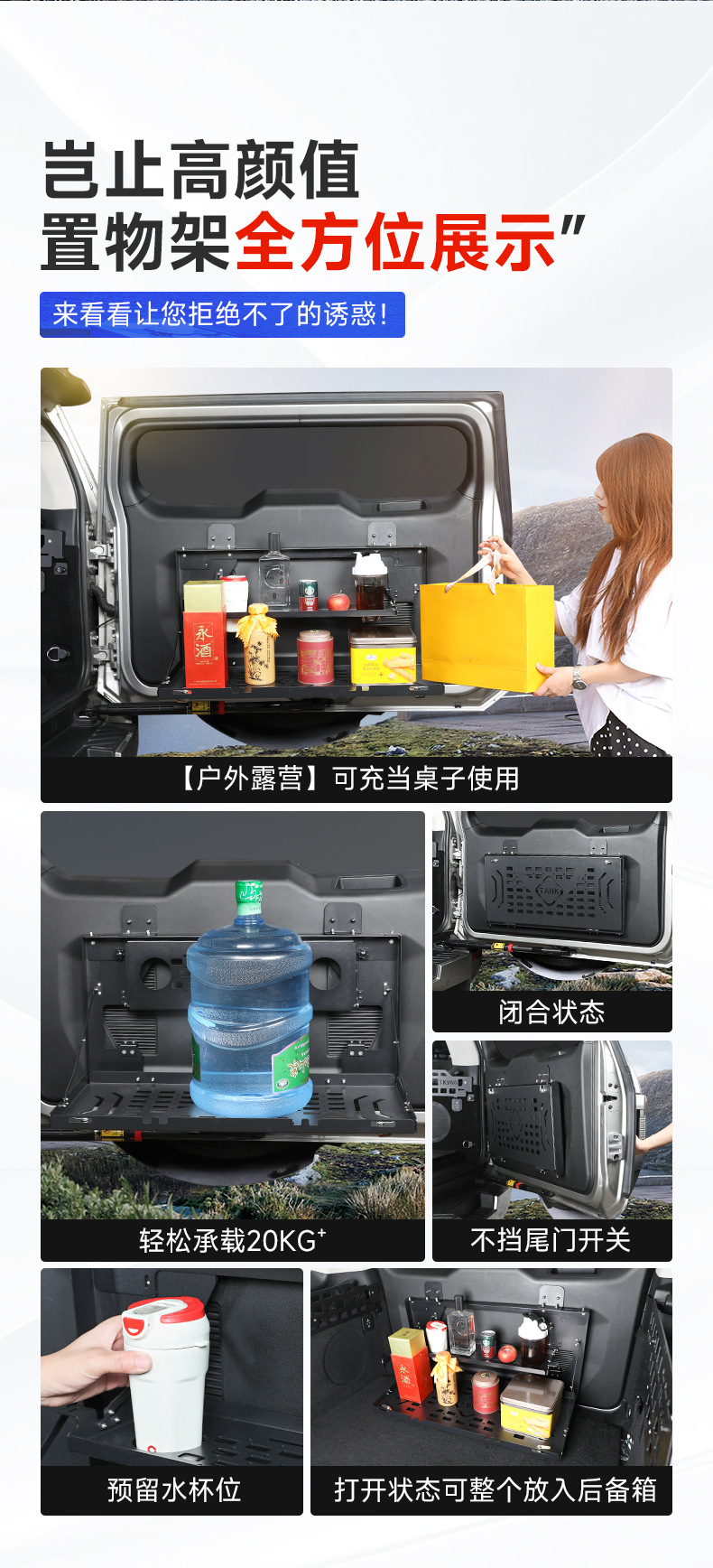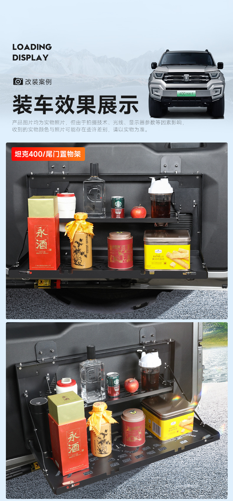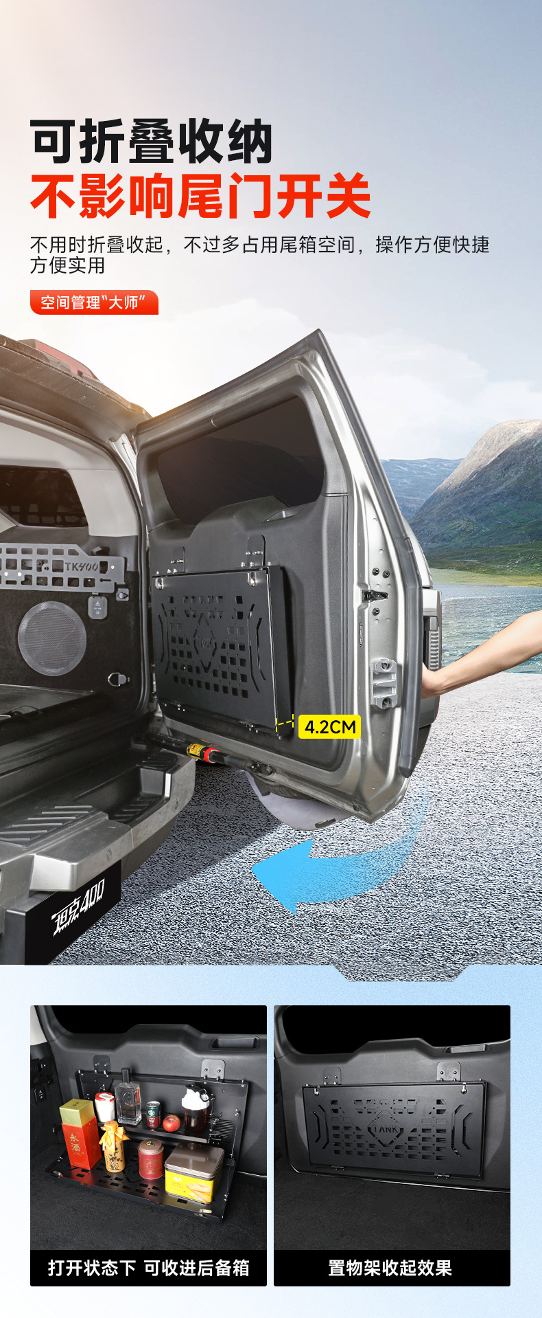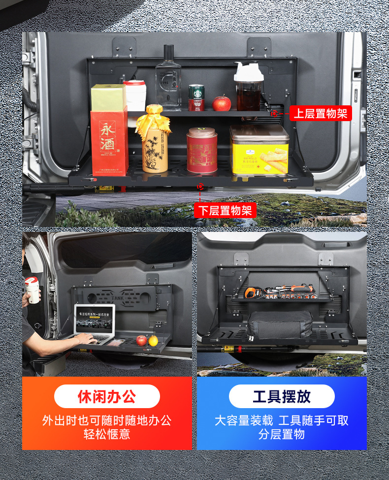 Tank 400Hi4T Tailgate Storage Rack Foldableing Modified Trunk Double-Layer Storage Rack Table Non-Destructive Installation
