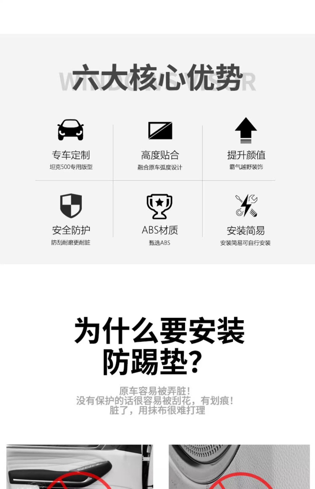 Tank 500 door anti-kick panel carbon fiber pattern anti-kick pad horn ring cover interior decoration modification special accessories