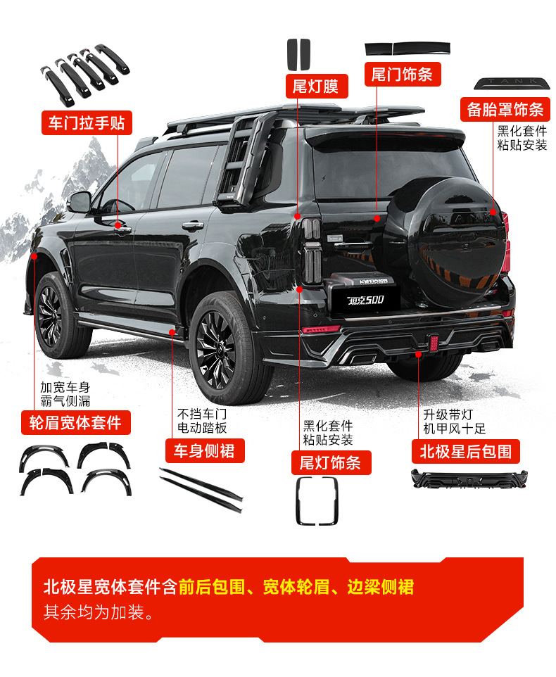 Tank 500 Modification Kit Front Lip Sand Stone Block Black Samurai Front Face Kit Wide Body Wheel Eyebrow Rear Bars Tail Surrounding