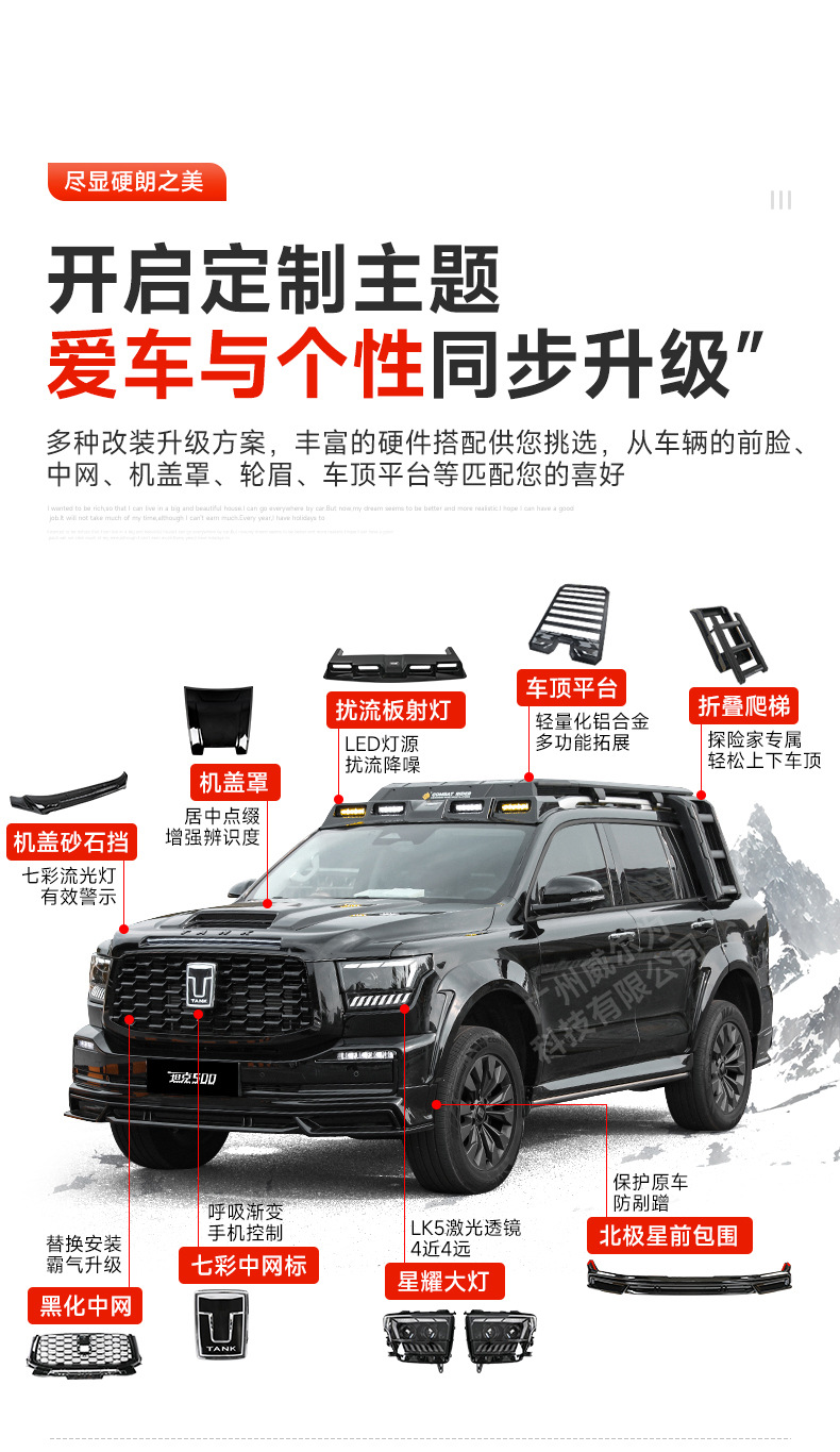 Tank 500 Modification Kit Front Lip Sand Stone Block Black Samurai Front Face Kit Wide Body Wheel Eyebrow Rear Bars Tail Surrounding