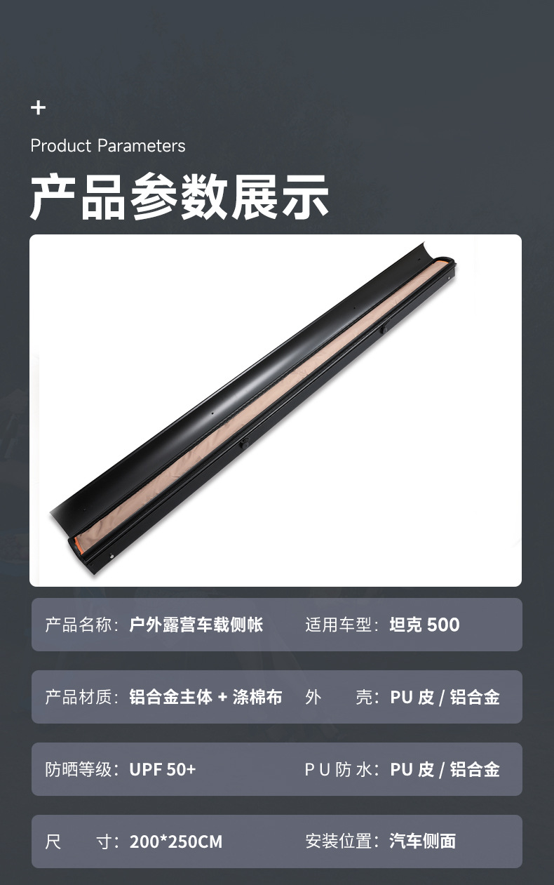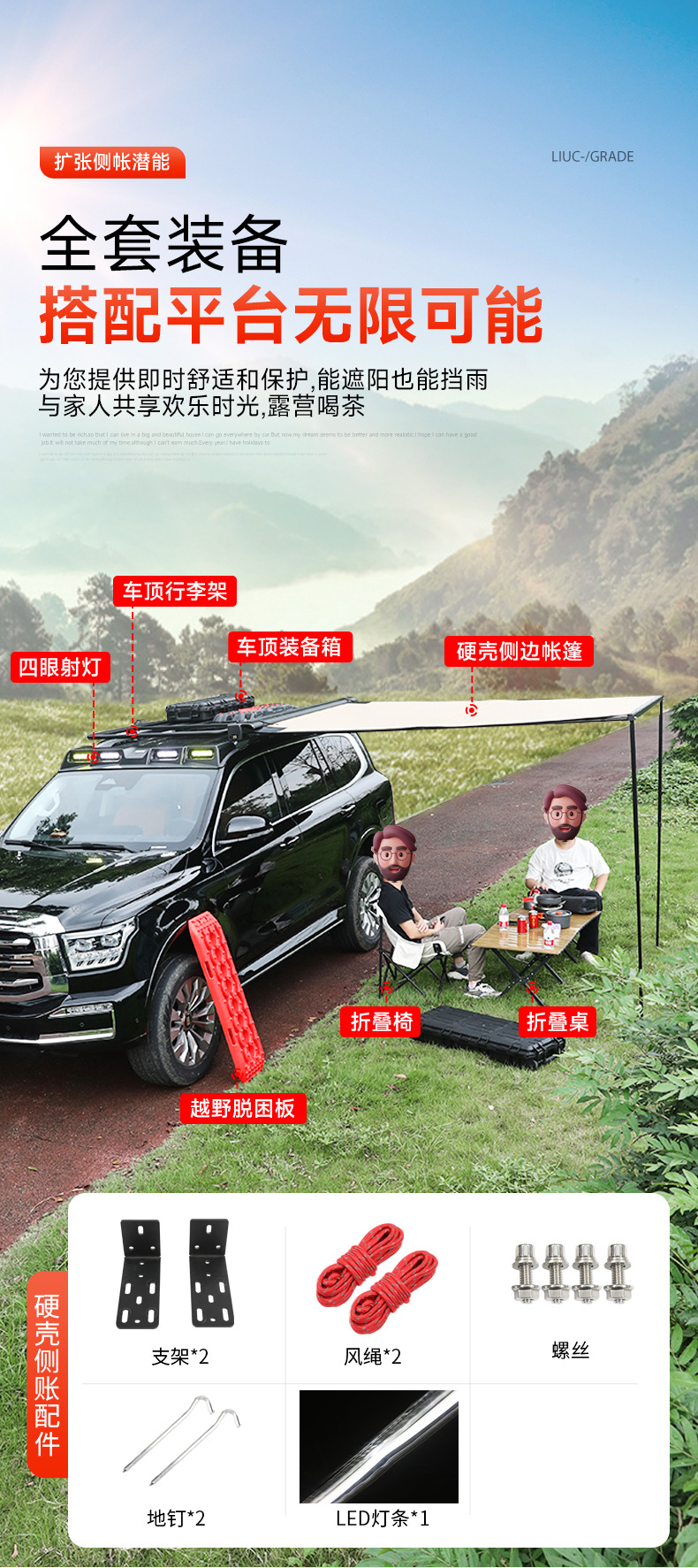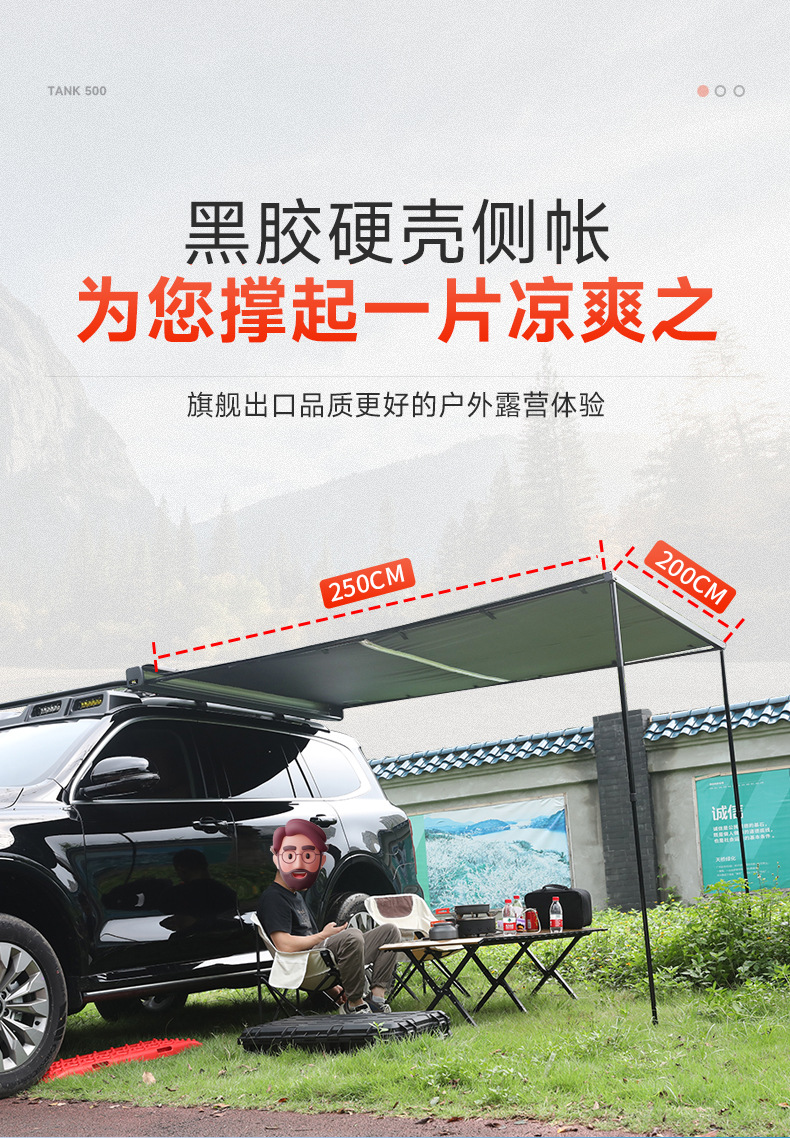 Tank 500 Outdoor Side Tent Roof Rack Sunscreen Rainproof Car Hard Shell Side Account Sunshade Camping Canopy