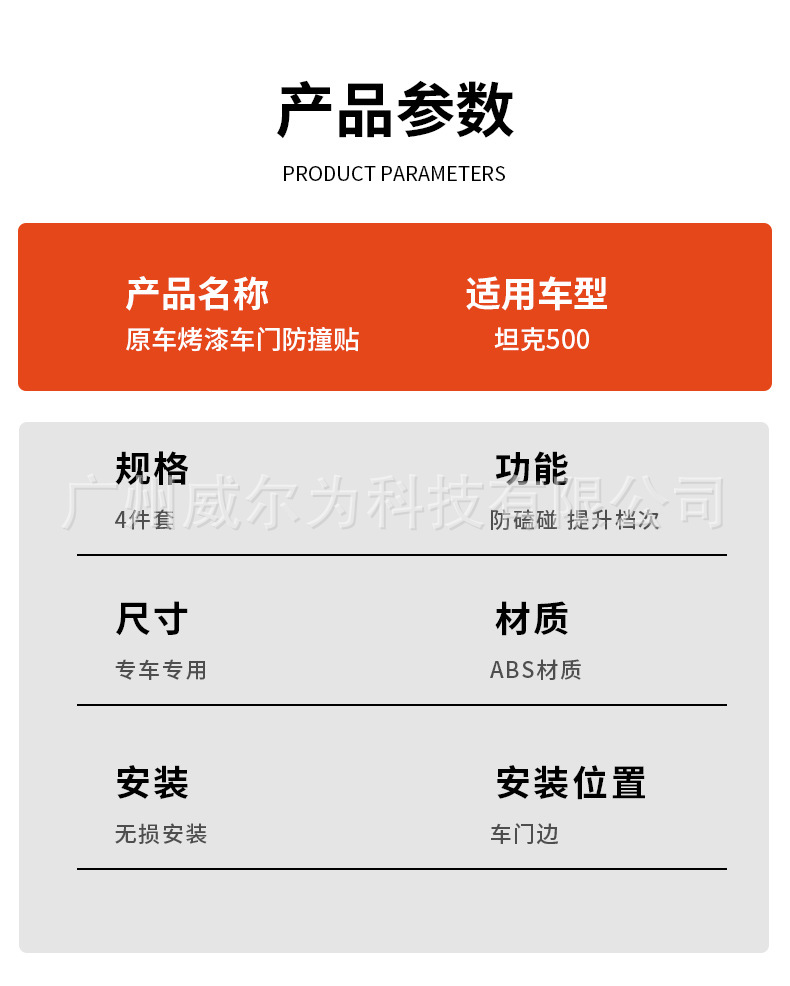Tank 500Hi4-T Door Anti-collision Strip Exterior Trim Protective Trim Anti-collision and Anti-scratch Strip Modification Special Accessories