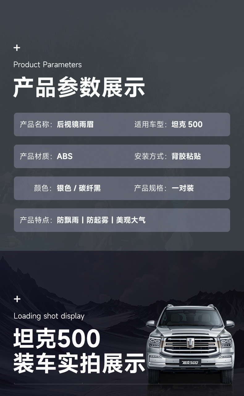 Be the first to review “Tank 500Hi4-T rearview mirror rain eyebrow decorative frame reverse mirror rain shield body modification special exterior accessories” Cancel reply