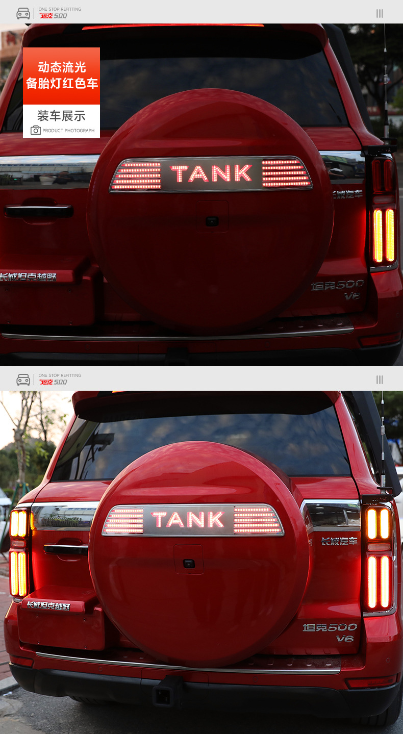 Tank 500Hi4-T spare tire cover streamer light modified car logo letter light bar brake light left and right steering flash atmosphere