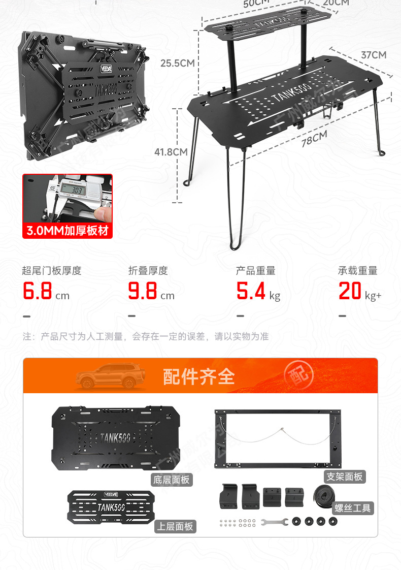 Be the first to review “Tank 500Hi4-T Tailgate Storage Rack Modified Trunk Storage Rack Two-in-One Expansion Rack Tactical Small Table Board” Cancel reply