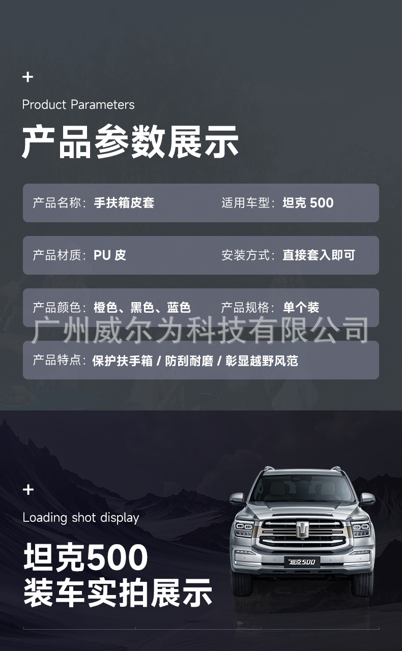 Tank 500Hi4T armrest leather case central handle case interior decoration modification special accessories auto supplies