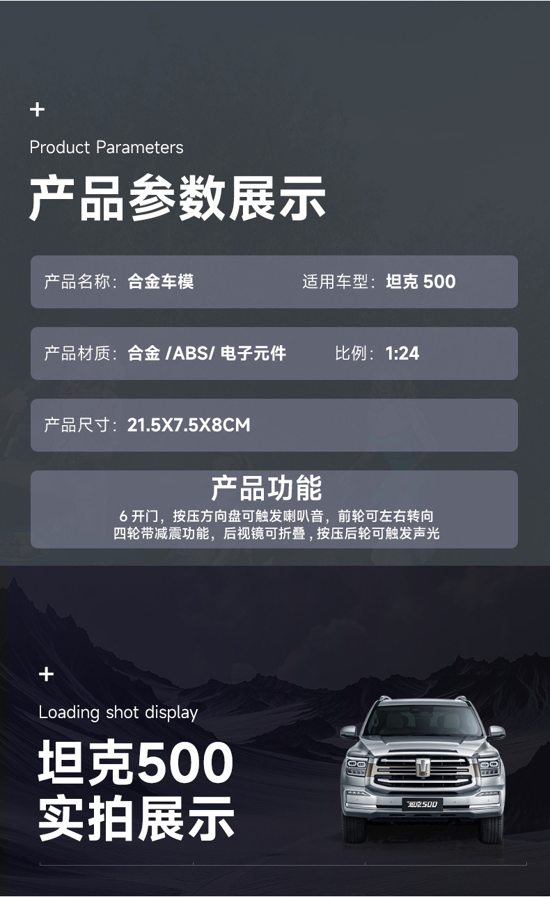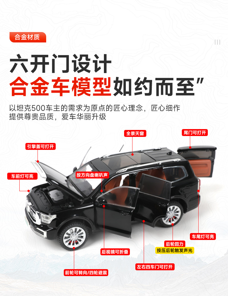 Tank 500Hi4T Car Model Alloy Artificial 300 Off-Road Vehicle New Energy Vehicle Model Toy Car Boy