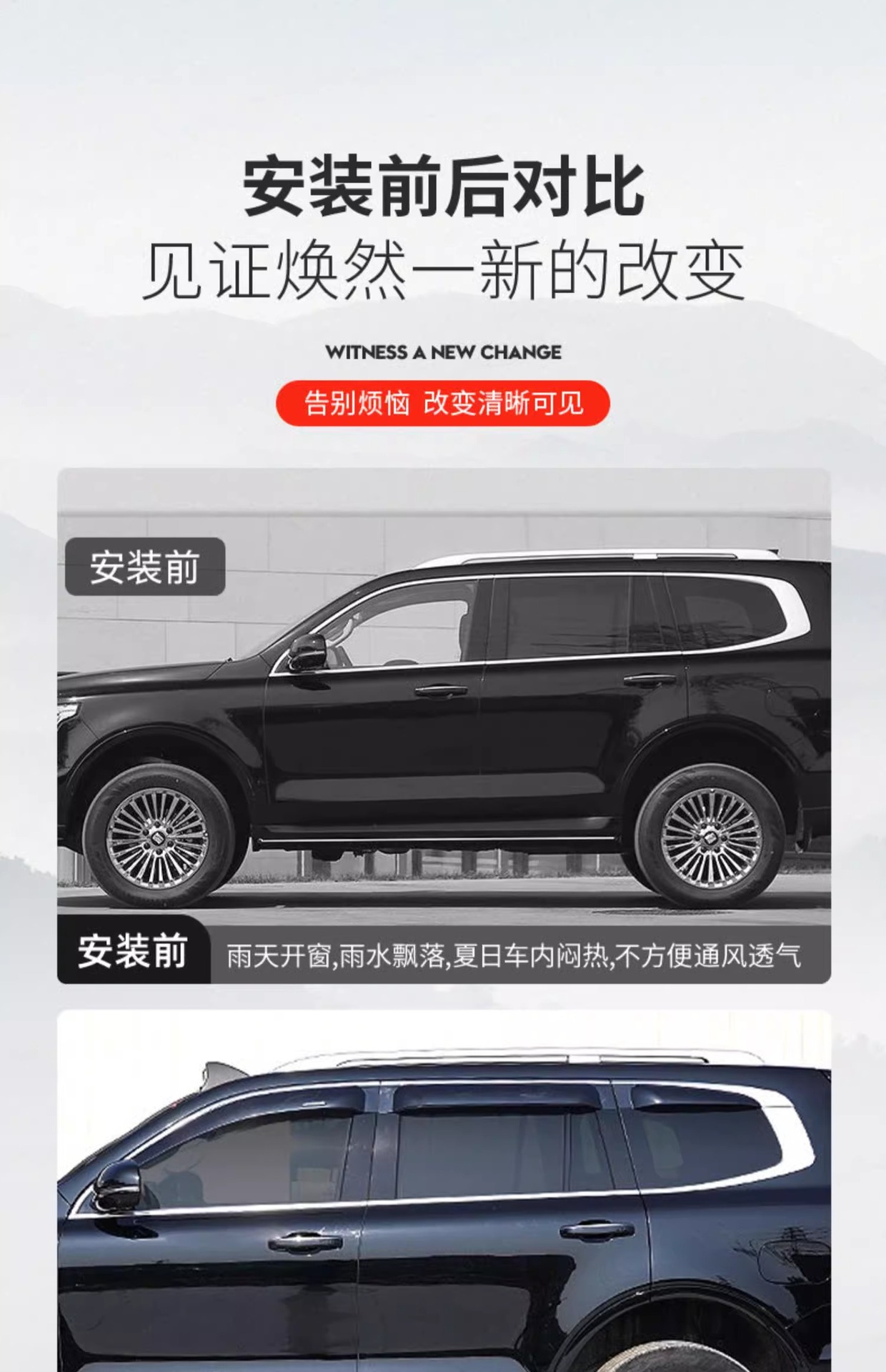 Be the first to review “Tank 500hi4t rain shield fully electroplated 6 pieces of car window rain eyebrow off-road modified rain shield body decoration accessories” Cancel reply