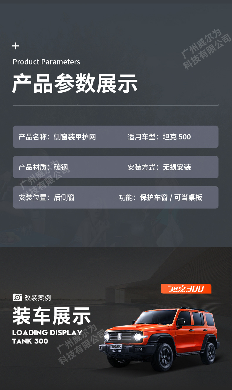 Tank 500hi4t rear window mecha net modification side window hanging net expansion trunk window protection net engineering shovel
