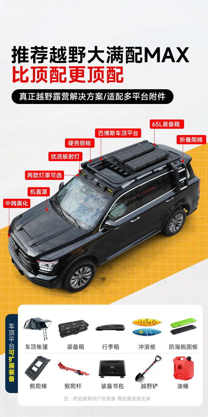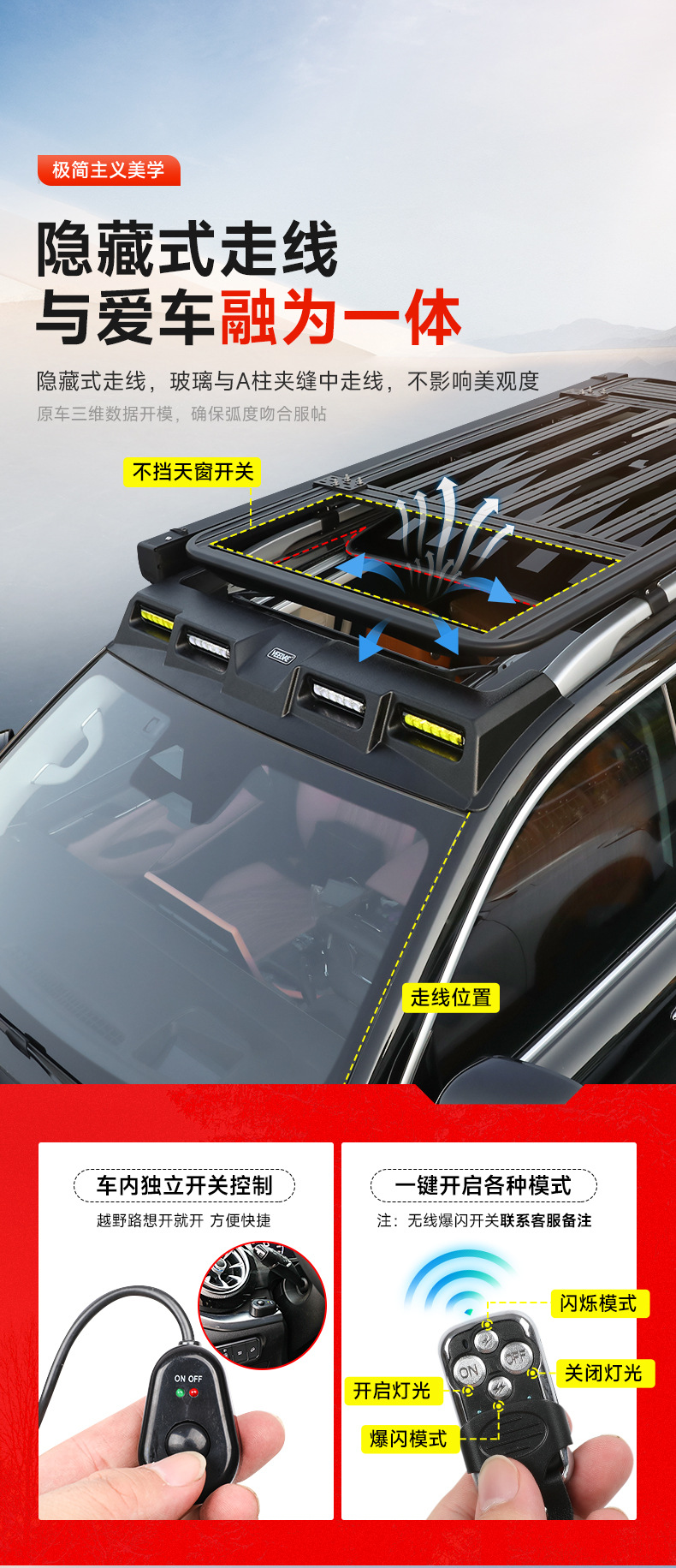 Tank 500hi4t roof spotlight four-eye spoiler searchlight LED flash off-road modified luggage rack ladder