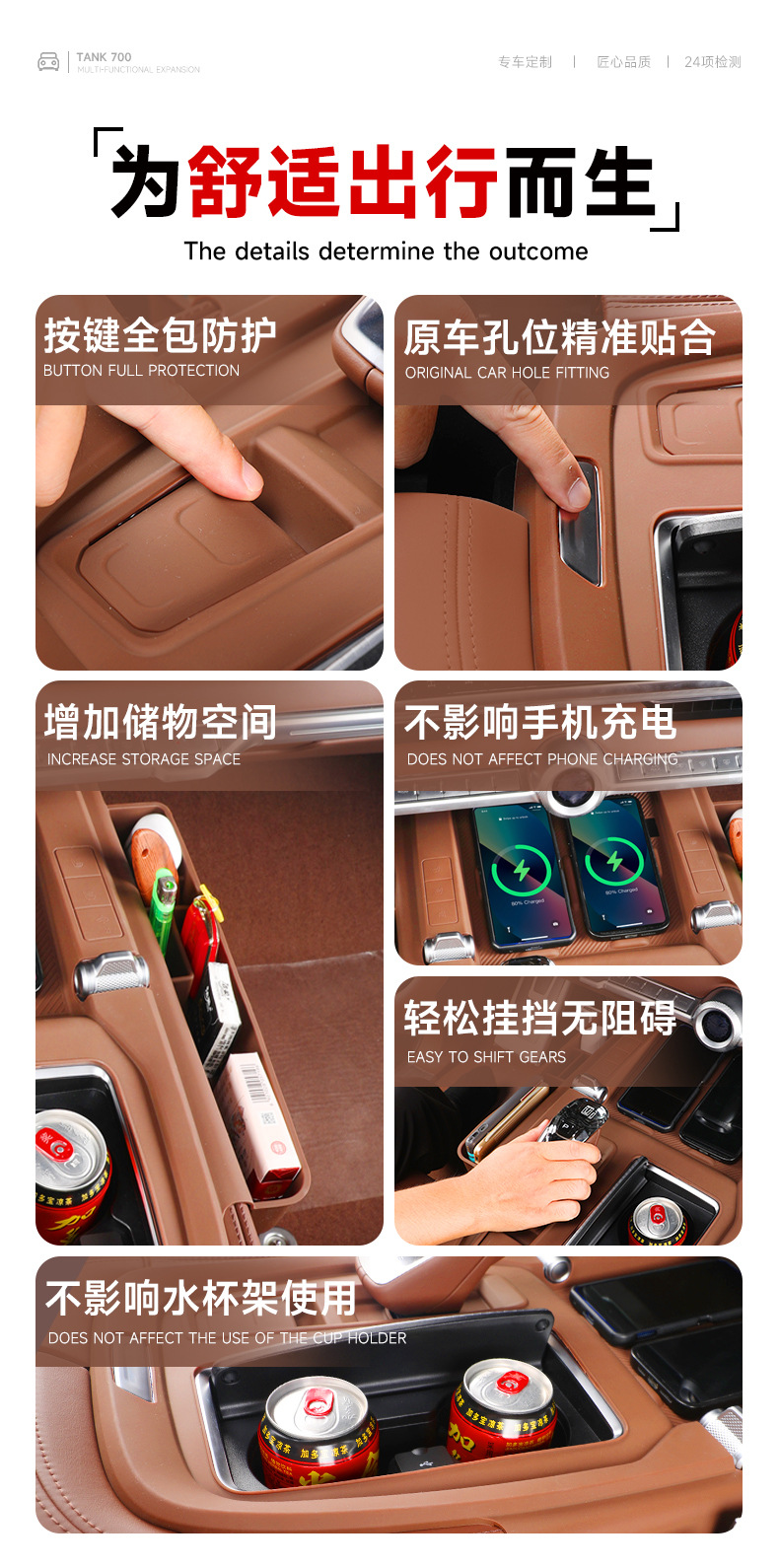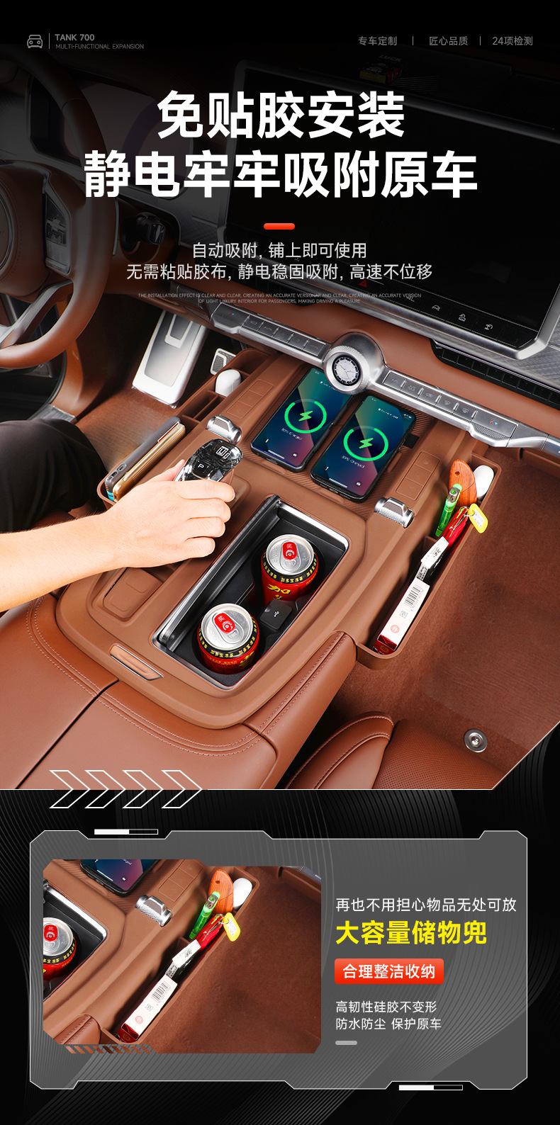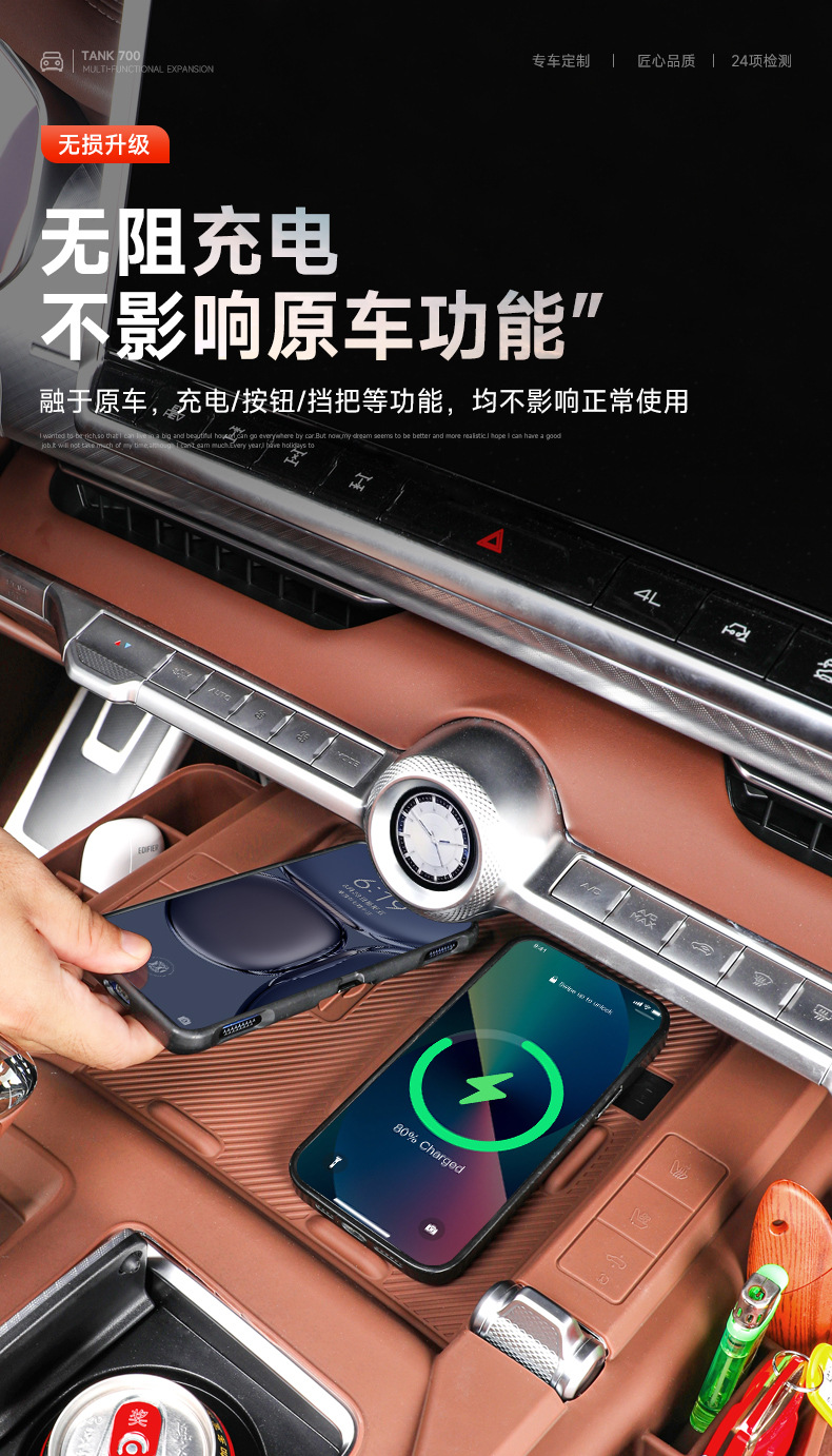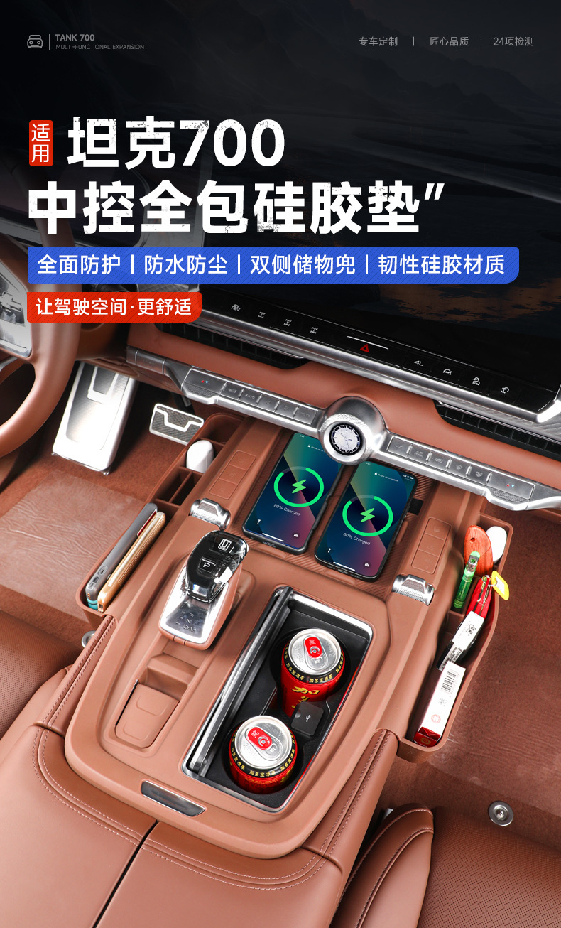 Tank 700 central control panel wireless silicone water cup pad storage box car decoration pad modification supplies