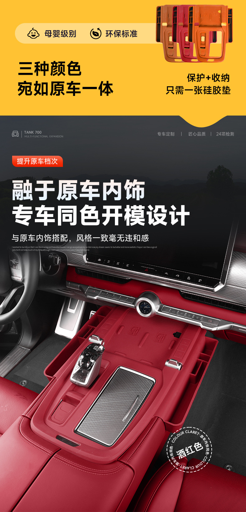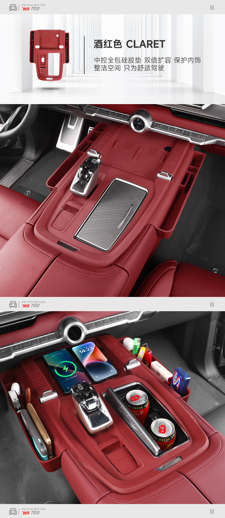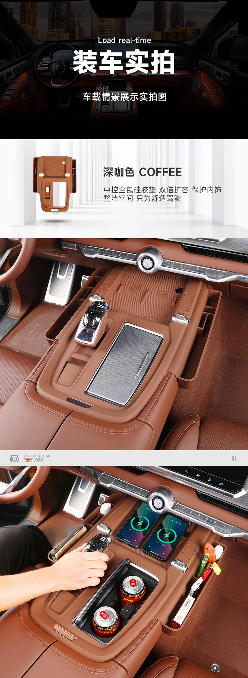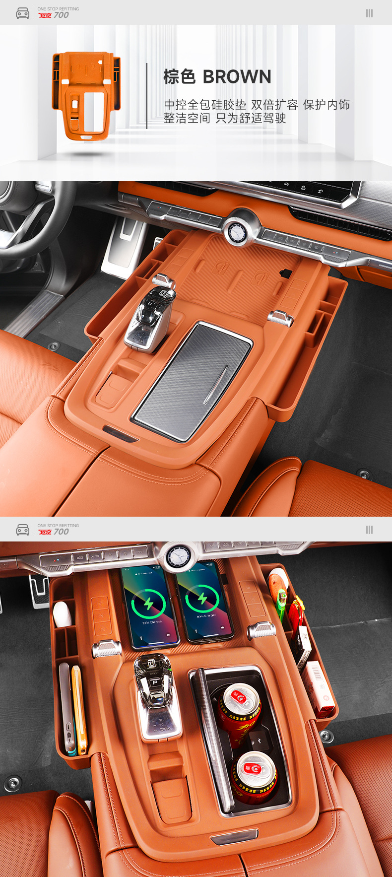 Tank 700 central control panel wireless silicone water cup pad storage box car decoration pad modification supplies