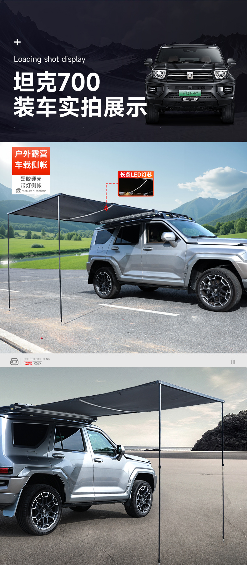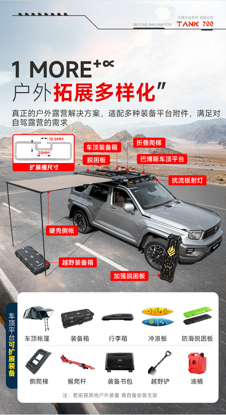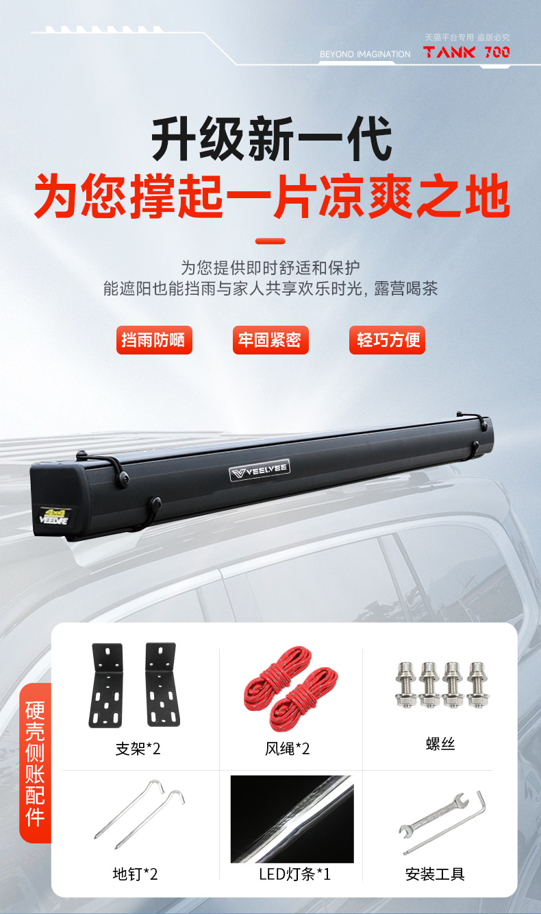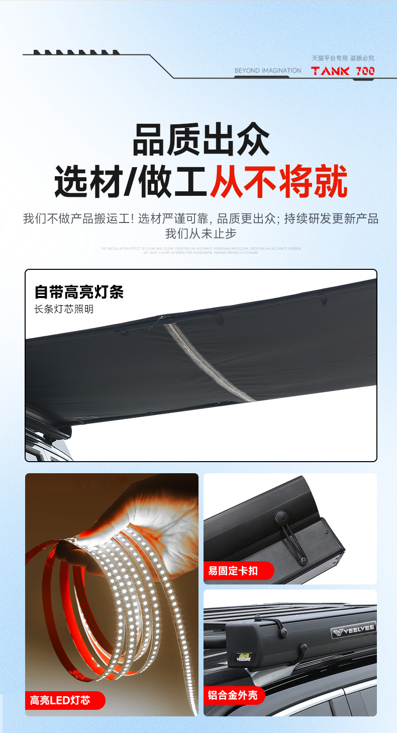 Tank 700 Outdoor Side Tent Sunscreen Rainproof Car Hard Shell Side Account Car Roof Frame Sunshade Camping Canopy