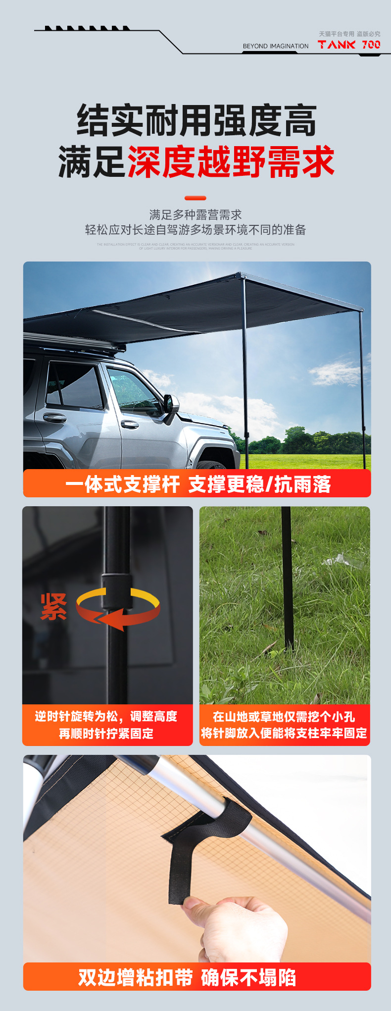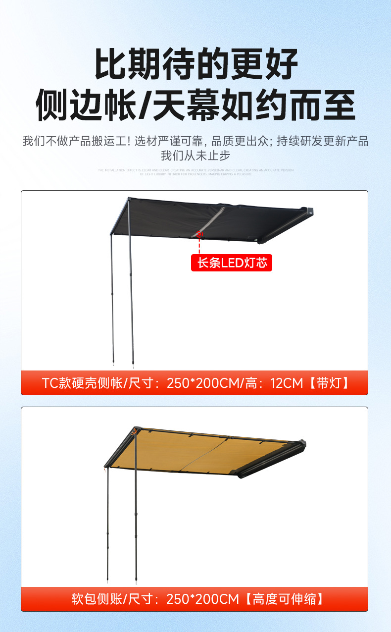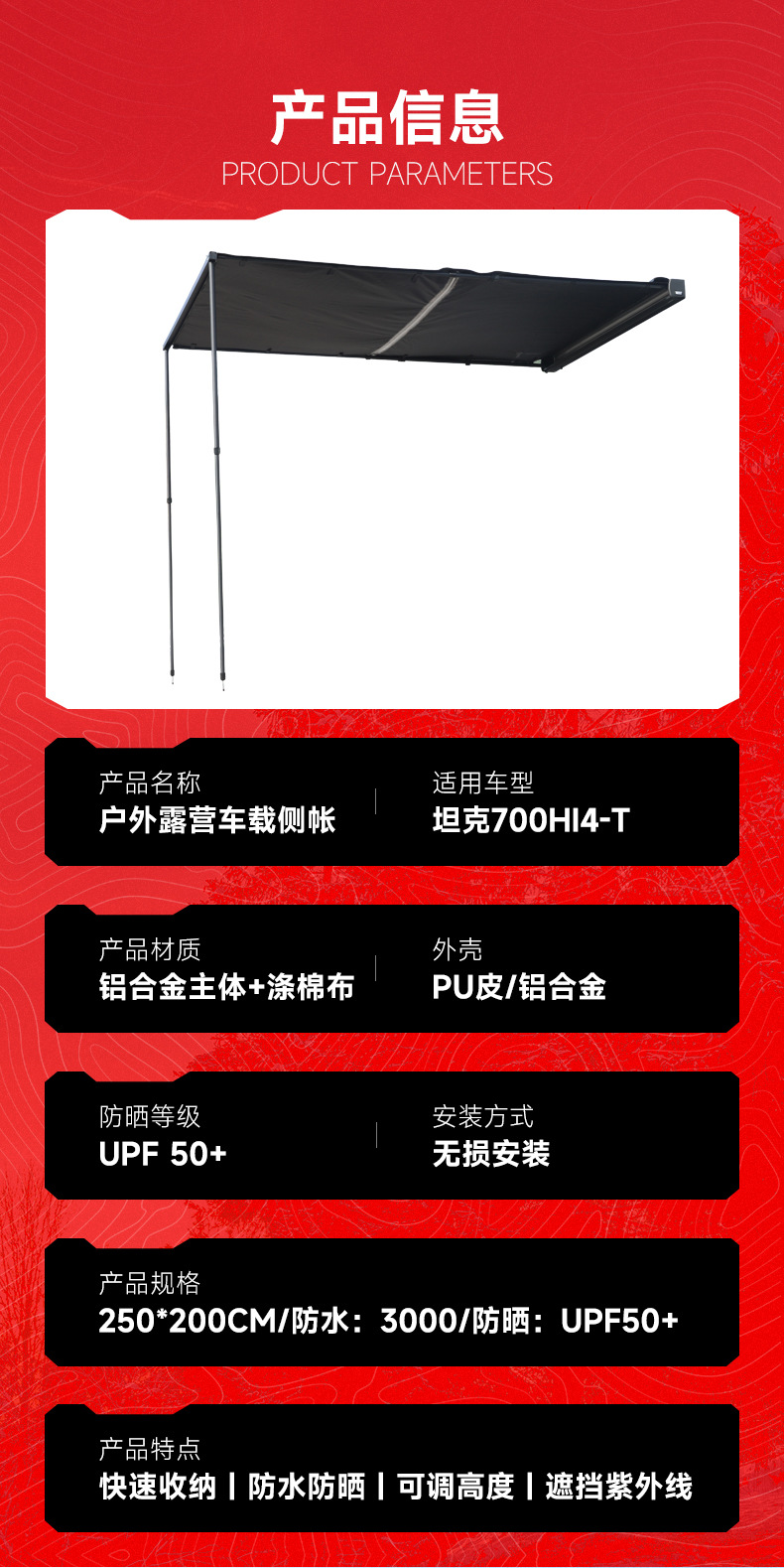 Tank 700 Outdoor Side Tent Sunscreen Rainproof Car Hard Shell Side Account Car Roof Frame Sunshade Camping Canopy
