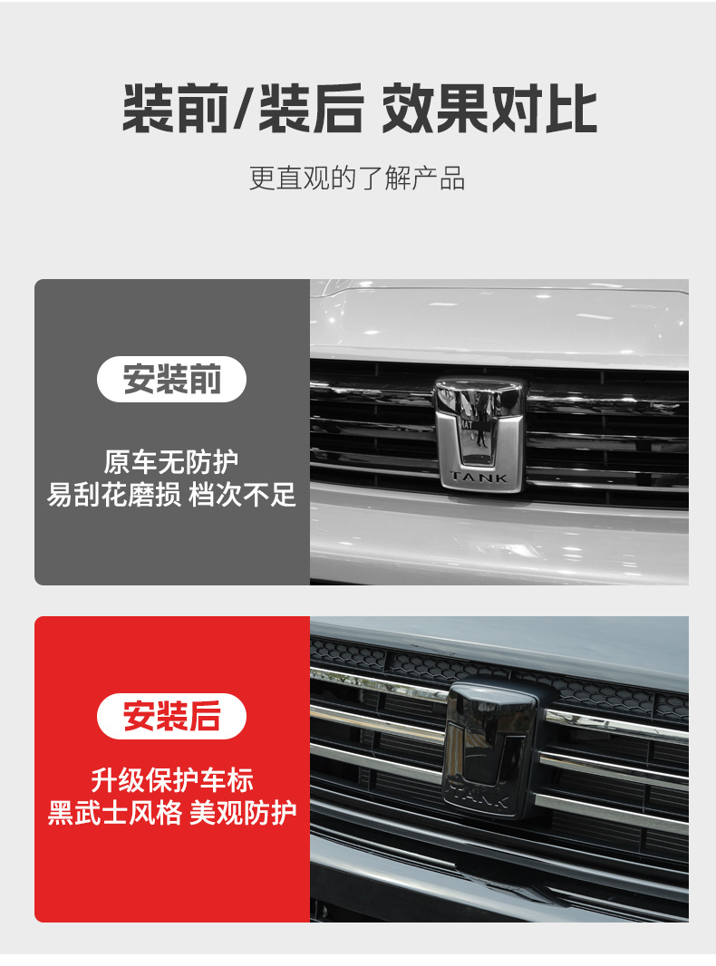 Tank 700Hi4-T Mesh Trim Strip Car Mark Black Samurai Modified Front Face Blackened Appearance Special Decorative Accessories