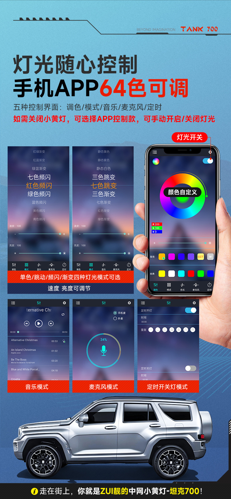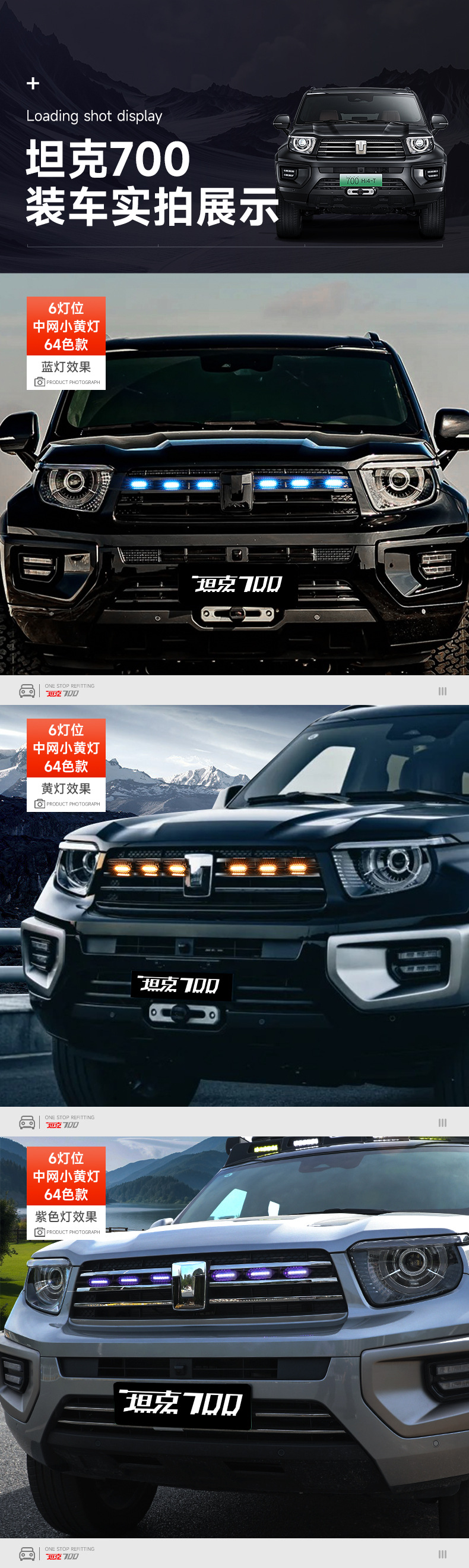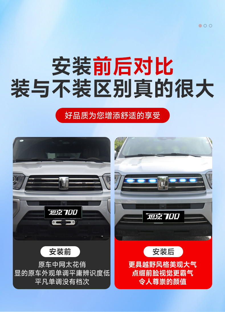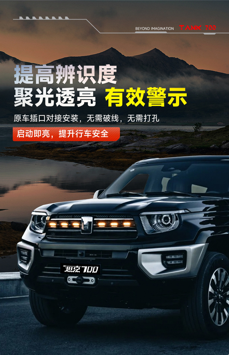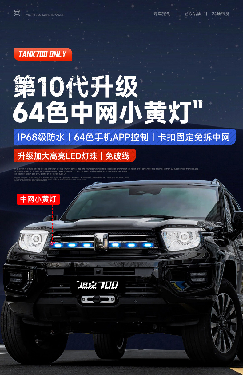 Tank 700Hi4-T Middle Net Small Yellow Light Upgrade Buckle Middle Net Light LED Colorful Front Face Atmosphere Light Modification